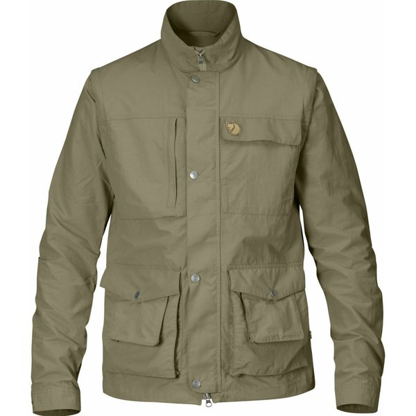 Popular MT Vest in a jacket version with detachable sleeves. Hip-length model in in soft, wrinkle-free MT that breathes well and dries quickly. A flexible travel garment that can be used in many different ways: with or without sleeves, or with the sleeves left as protection from the sun, but with a generous vent at the arm pits. Many smart pockets of various sizes are handy for photographers or when on an adventure-filled trip in warm climates. The left breast pocket has a flap and space for a smartphone/GPS plus a pen pocket. The right breast pocket has a vertical zipper. Two large bellow pockets at the hem with small zippered outer pockets for safe storage of your camera's lens cover, for example. There are also two inner safety pockets and a large pocket at the lower back where detached sleeves can be kept when not in use. Small straight collar. Thin protective flap with buttons in the front keeps sand away from the zipper. Buttoned cuffs.