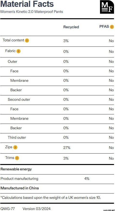 Hengittävyys (MVTR): 35 000 g/m²/24 h