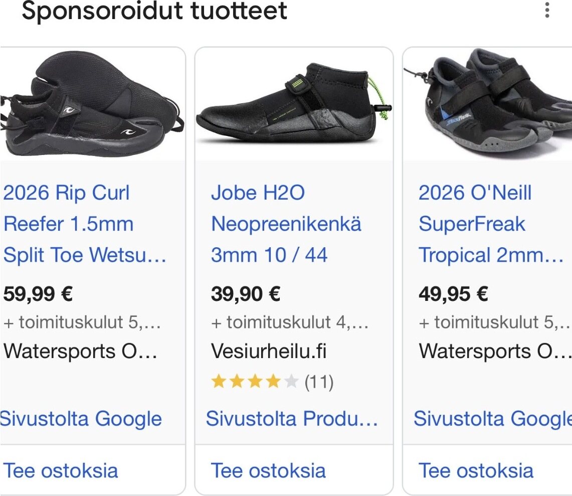Edulliset uimatossut etelän matkalle. Ompeleet alkoivat vähän juoksennella ja pohjallisen reuna nauraa aika vähäisillä käyttötunneilla, mutta ei voi valittaa kun hinta oli varsin edullinen.