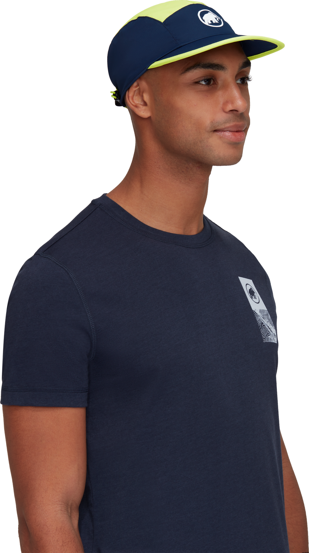 You want protection from the sun when trail running, fast hiking or during other sweaty mountain activities. With the Mammut Aenergy Light Cap, you have an extremely light 5-panel cap in your bag. A drawstring and stopper on the back allow you to adjust the size ideally to your head. A flexible visor allows the cap to be folded for compact storage.