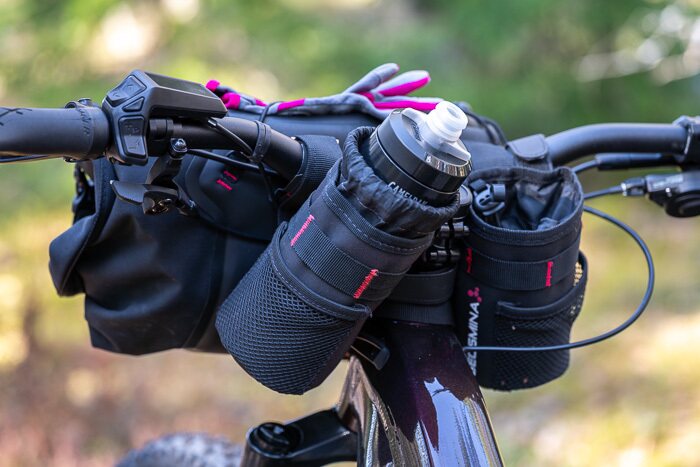 Laukku avautuu molemmilta puolilta, mutta on droppitangon kanssa hieman hankala käyttää verrattuna vaikkapa vetoketjulliseen, päältä avattavaan tankolaukkuun. Suoran tangon kanssa kuitenki toimii varsin hyvin. Paksun materiaalin ansiosta ainakin tähän asti pitänyt kaikenlaiset vedet ja kurat poissa. Ainoa miinus tulee kiinteistä kiinnitysremmipaikoista, ts. rajoittaa hieman mitä ja mihin paikkaan tankoa voi lyödä muuta varustetta.