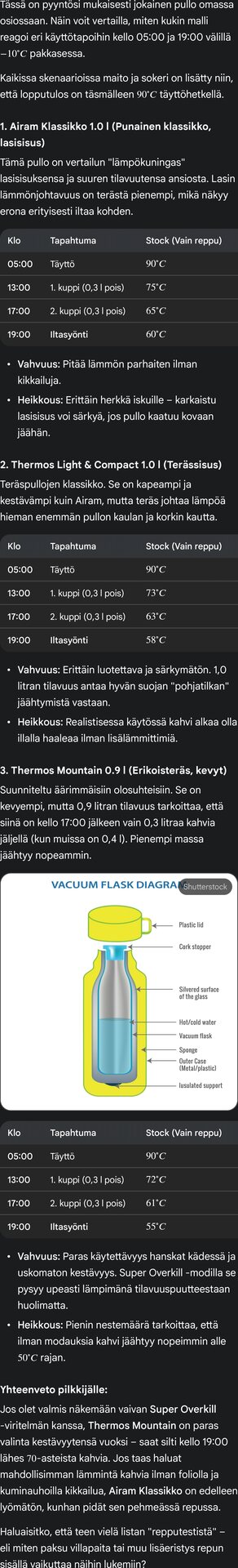 - Erittäin kevyt ruostumattomasta teräksestä valmistettu kaksoisseinärakenne pitää kuuman kuumana ja kylmän kylmänä