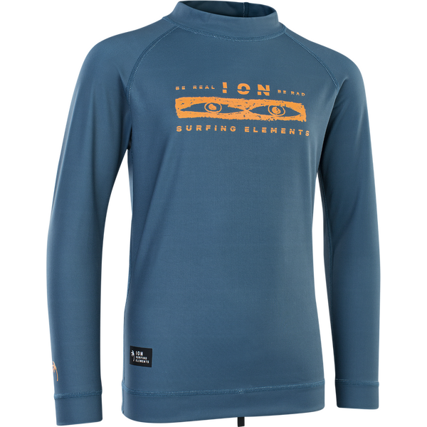The Capture Rashguard LS for boys provides comfortable stretch and shields against harmful UV rays. It's crafted entirely from 100% recycled PET waste by ION's partner, Waste2Wear.