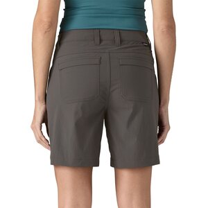 Patagonia Quandary Shorts 7" Womens yhdistävät mukavuuden ja joustavuuden, mikä tekee niistä erinomaiset retkeilyyn. Shortseissa on moderni istuvuus, joka mahdollistaa helpon liikkumisen, ja niiden vyötärö on aavistuksen korkeampi. Valmistettu 96 % NetPlus-kierrätetystä nailonista, joka on peräisin hylätyistä kalastusverkoista, mikä auttaa vähentämään muovijätettä merissä. 4 % elastaania sisältävä tasokudos takaa joustavuuden, ja kestävä vettähylkivä viimeistely ilman tarkoituksella lisättyjä PFAS-yhdisteitä suojaa kevyeltä kosteudelta.