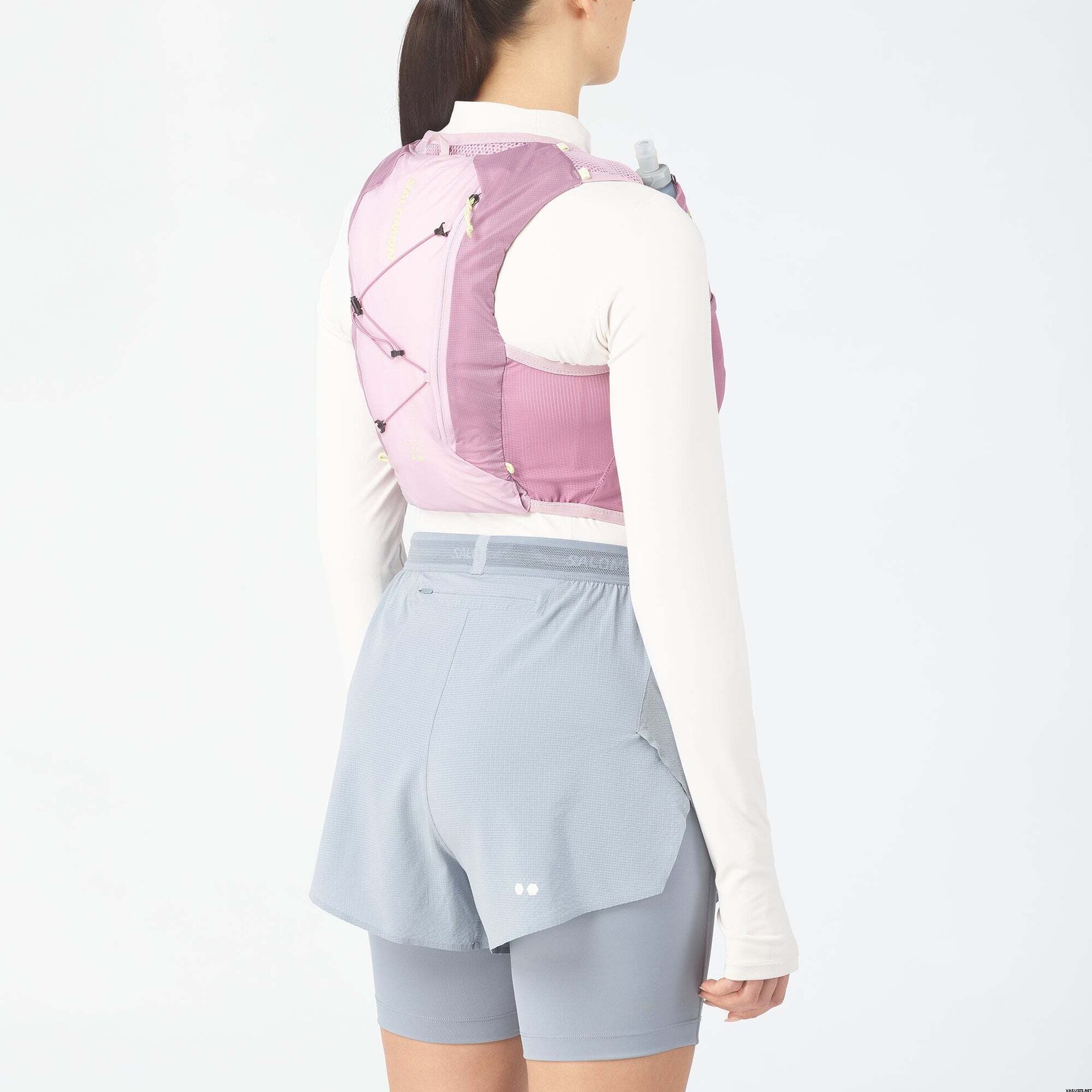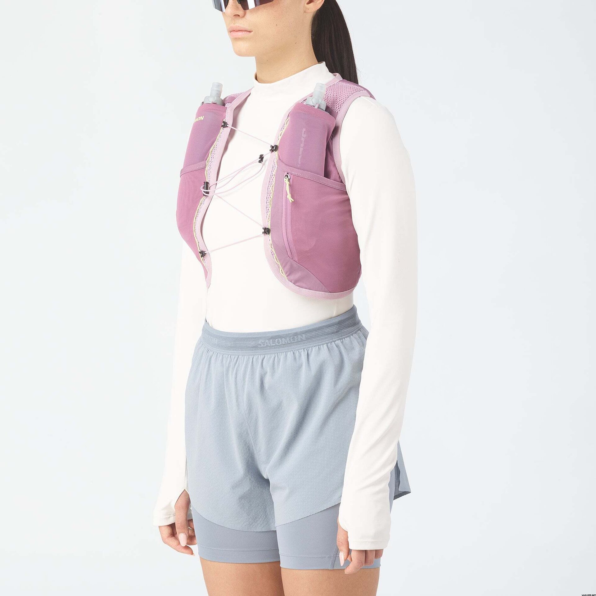 Salomon Active Skin 4 Set Womens on monipuolinen juomaliivi, joka parantaa polkujuoksukokemustasi. Naisten juoksuliivi, johon sisältyy juomapullot, tarjoaa mukavan istuvuuden, joka on suunniteltu erityisesti naisille. Hengittävät ja pehmeät materiaalit sekä strategisesti sijoitetut rintataskut mahdollistavat nopean pääsyn nesteytykseen, mikä tekee liivistä ihanteellisen lyhyemmille polkujuoksuille. Yksinkertaisuus ja toiminnallisuus ovat tämän liivin keskiössä ja tekevät siitä täydellisen valinnan juoksuseikkailujen parantamiseen.