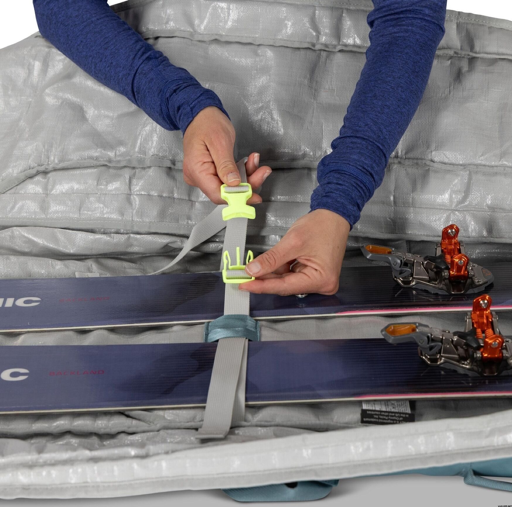 - Fits one or two pairs of skis or snowboards up to 195 cm
