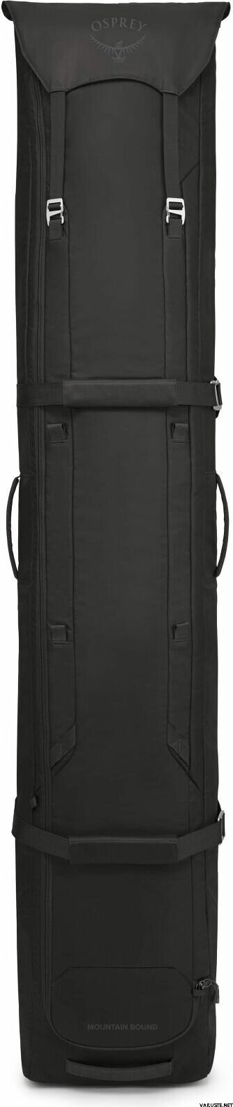 Elevate your winter travel experience with the Mountain Bound Ski & Snowboard Roller Bag, designed for reliability and ease. This ski bag features a robust chassis and oversized wheels, effortlessly handling various terrains. Crafted from durable, highly water-resistant NanoTough fabric, it securely holds one or two snowboards or pairs of skis up to 195 cm, thanks to its padded sidewalls and internal/external compression straps.