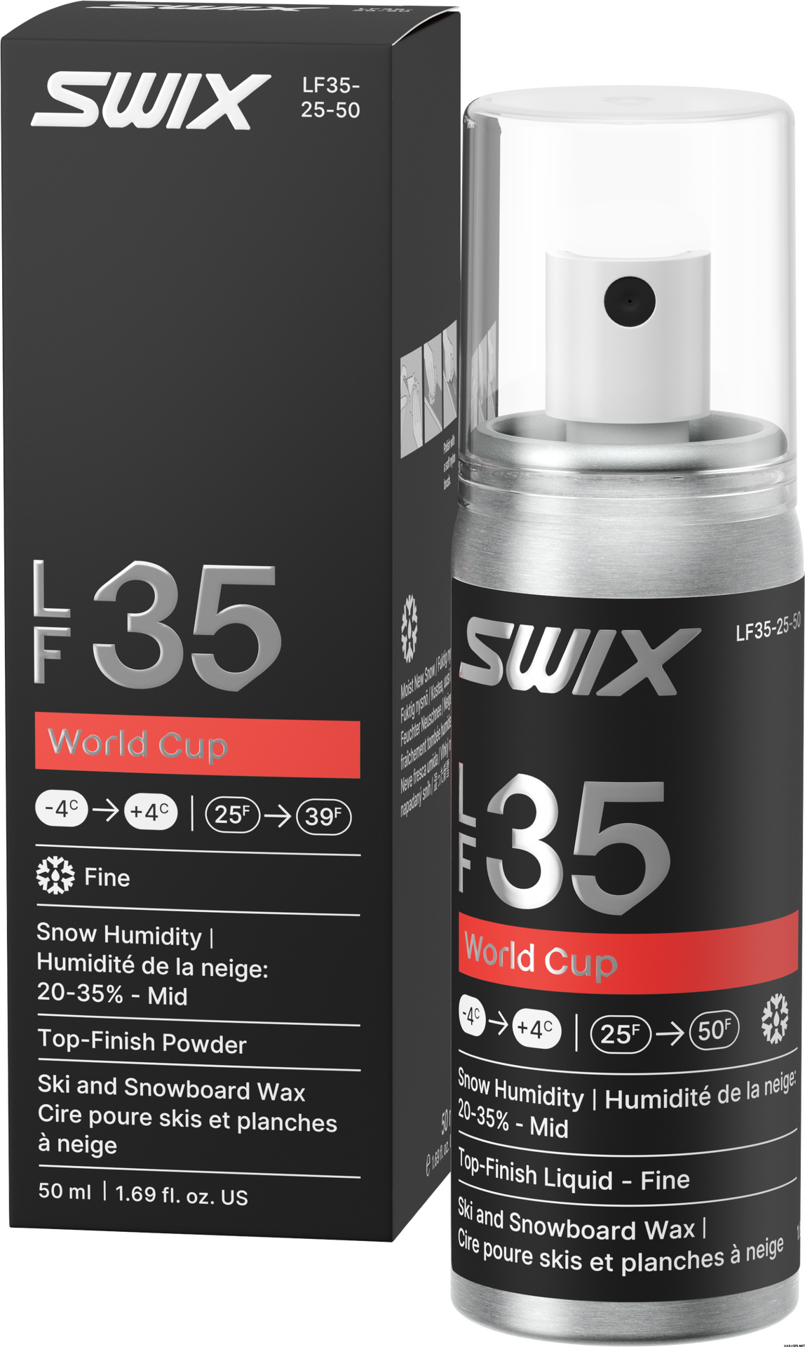 Saavuta poikkeuksellinen nopeus hienossa uudessa lumessa Swix World Cup Liquid Fine Mid, 50ml avulla. Edistynyt nestemäinen pintaviimeistely, joka on valmistettu huipputeknologialla, luo nopean, vettähylkivän kerroksen, joka vähentää kitkaa ja parantaa liukua nollakelillä. Suunniteltu erityisesti kisaamiseen ja toimii parhaiten 20–35 % kosteudessa. Käyttö on yksinkertaista: suihkuta tasaisesti ja kiillota pehmeällä nailonharjalla.