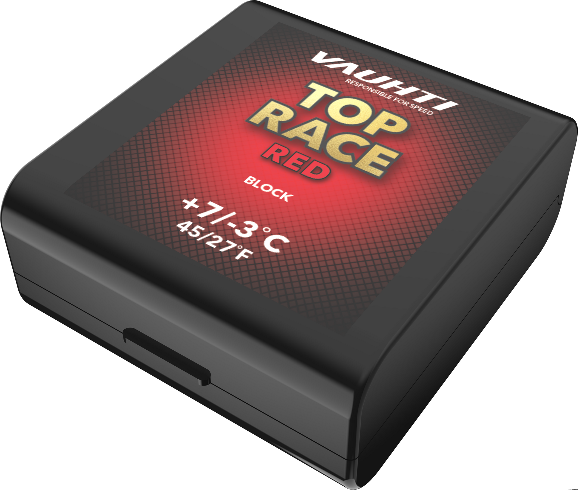 Vauhti Top Race Red Block 12g +7…-3 on huippuluokan pinnoite, joka on suunniteltu kilpahiihtoon. Tuote valmistetaan tarkalla kaksivaiheisella prosessilla, jossa raaka-ainejauhe ensin homogenisoidaan ja sitten puristetaan blokiksi. Parhaiden tulosten saavuttamiseksi suositellaan, että suksen pohja käsitellään Race-linjan luistovoiteella, joka sopii vallitseviin lumiolosuhteisiin. Levitä Top Race Block -pinnoite koko luistopinnalle, hiero synteettisellä korkilla, jossa on fleece, ja viimeistele nailonharjalla.