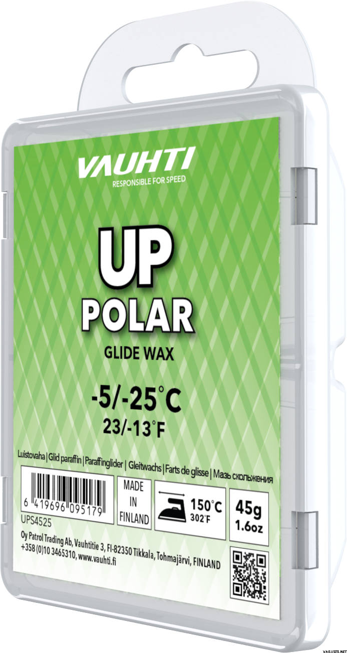 Vauhti Up Polar Green 45g -5…-25 Glide Wax on suunniteltu hiihtäjille, jotka vaativat huippusuorituskykyä. Luistovoide sopii erinomaisesti sekä aktiivisille harrastajille että kilpahiihtäjille, tarjoten tasaisen ja tehokkaan luiston lumella. Voiteen koostumus sisältää korkealaatuisia hiilivetyainesosia, sinkkistearaattia ja silikonivahaa, taaten erinomaisen suorituskyvyn ja kestävyyden.
