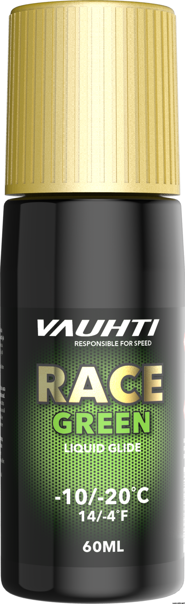 Vauhti Race Green Liquid 60ml -10…-20 on huippuluokan luistovoide, joka on suunniteltu kilpahiihtoon. Nestemäinen luistovoide valmistetaan tarkalla kaksivaiheisella prosessilla, joka alkaa raaka-ainejauheiden homogenisoinnilla ja jatkuu orgaanisiin liuottimiin prosessoinnilla. Voiteen korkealaatuinen hiilivetyseos, sinkkistearaatti ja silikonivaha tarjoavat poikkeuksellista kestävyyttä ja luistoa.