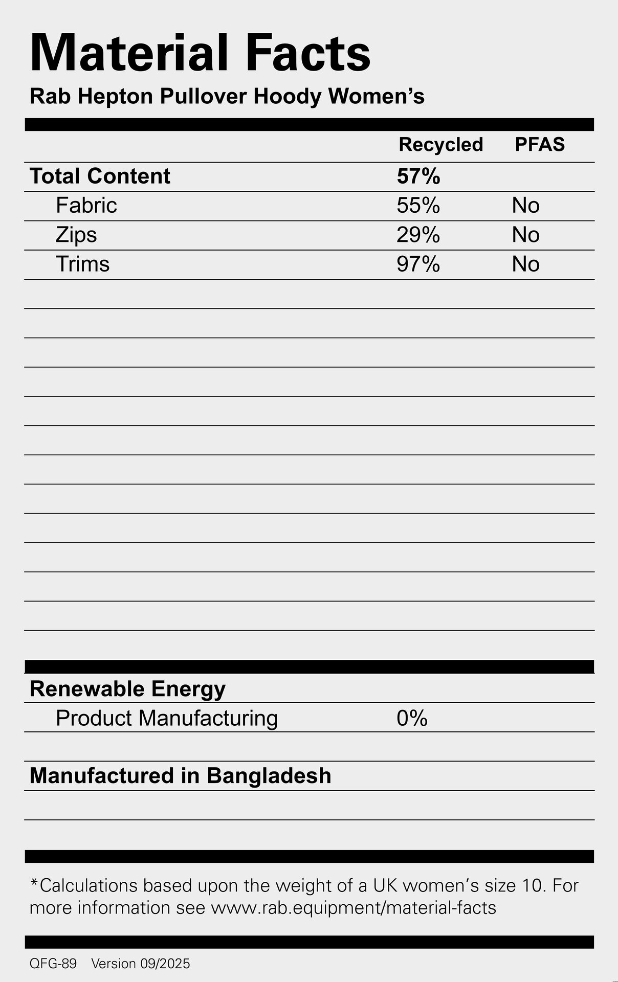 Rab Hepton Pullover Hoody Mens on suunniteltu aktiiviseen ulkoiluun, kuten vaeltamiseen ja kiipeilyyn. Miesten huppari hyödyntää ainutlaatuista 3D-vohvelikangasta, joka haihduttaa kosteutta tehokkaasti ja kuivuu nopeasti. Joustava rakenne mahdollistaa laajan liikkumisvapauden, tehden siitä erinomaisen valinnan kerrospukeutumiseen ympäri vuoden.