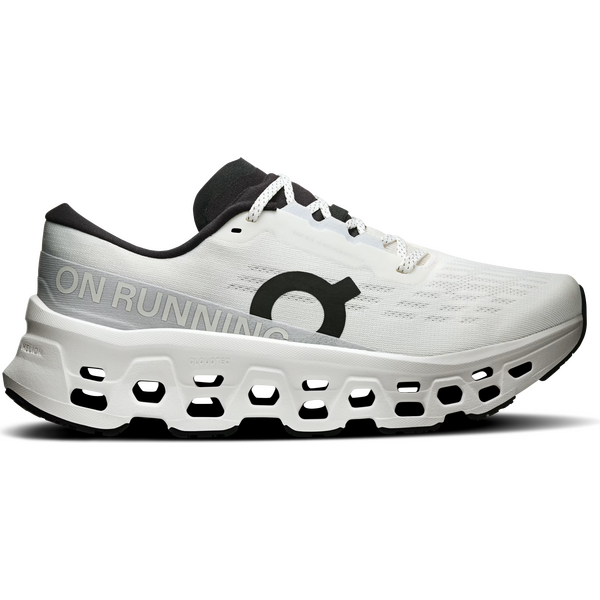 On Cloudmonster 3 Womens -maantiejuoksukengät tarjoavat päivitetyn, eteenpäin rullaavan askelluksen ja entistä terävämmän vasteen triple-layer Cloudtec -vaimennuksella. Helion-vaahto auttaa vaimentamaan iskut ja palauttamaan energiaa, jotta askel pysyy napakkana myös pidemmillä matkoilla. Neulottu päällinen on varustettu hengittävillä vyöhykkeillä ja iltin muotoilu helpottaa jalkaan sujauttamista sekä pitää tuntuman varmana.