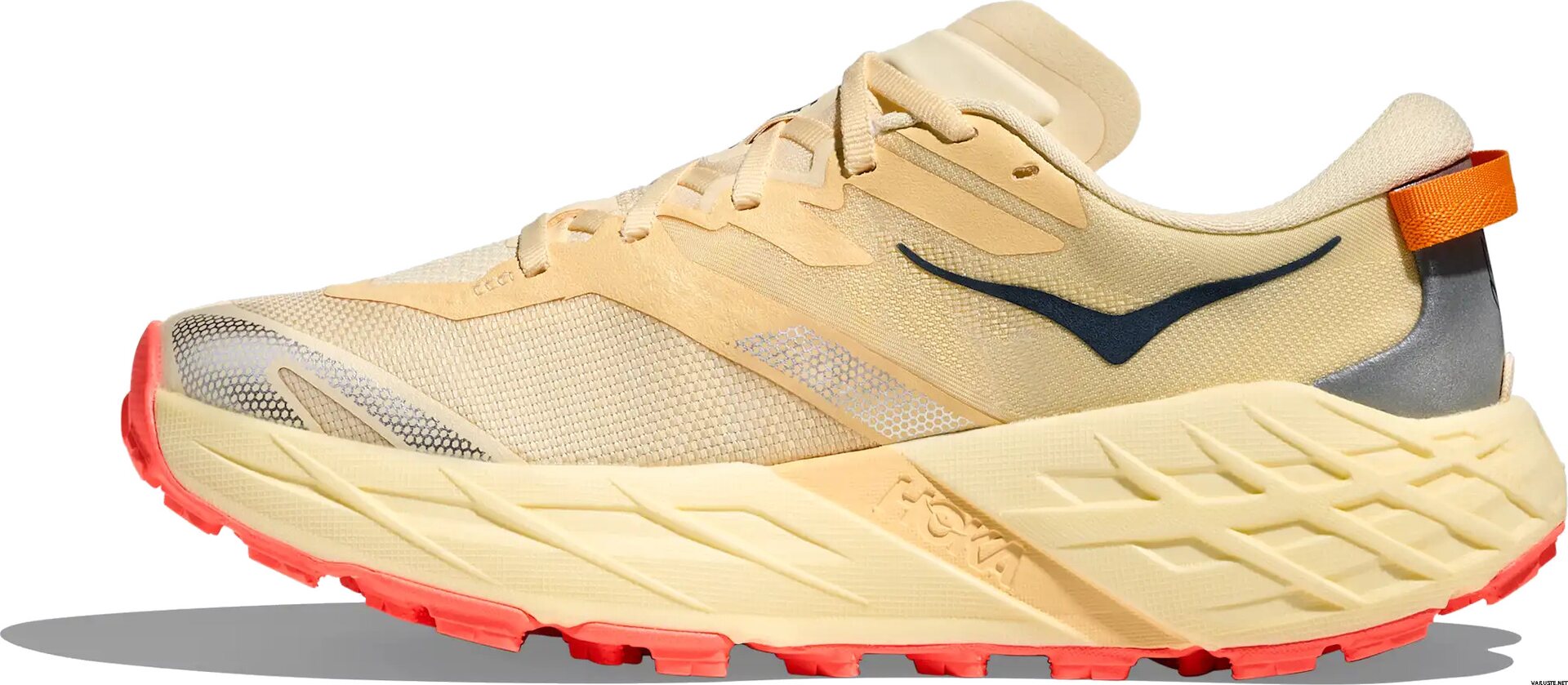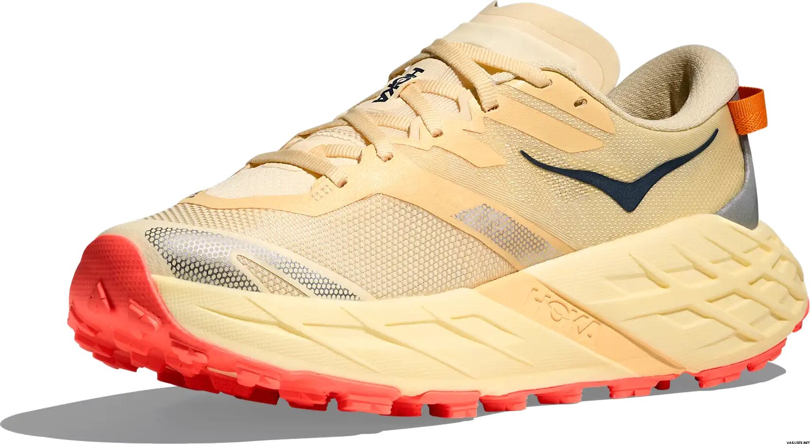Hoka Speedgoat 7 Womens tarjoaa erinomaisen pidon ja reagoivan tuntuman haastavilla poluilla. Naisten polkujuoksukenkä on päivitetty SCF-välipohjalla, joka parantaa energian palautusta ja siinä on mukavuutta lisäävä kantapääkaulus sekä gaiterin kiinnitys estämään roskien pääsyä kenkään. Speedgoat-sarja on tunnettu luotettavasta istuvuudestaan ja pidostaan, ja tämä malli vahvistaa asemaansa suosikkina koko päivän kestävissä polkujuoksuissa.
