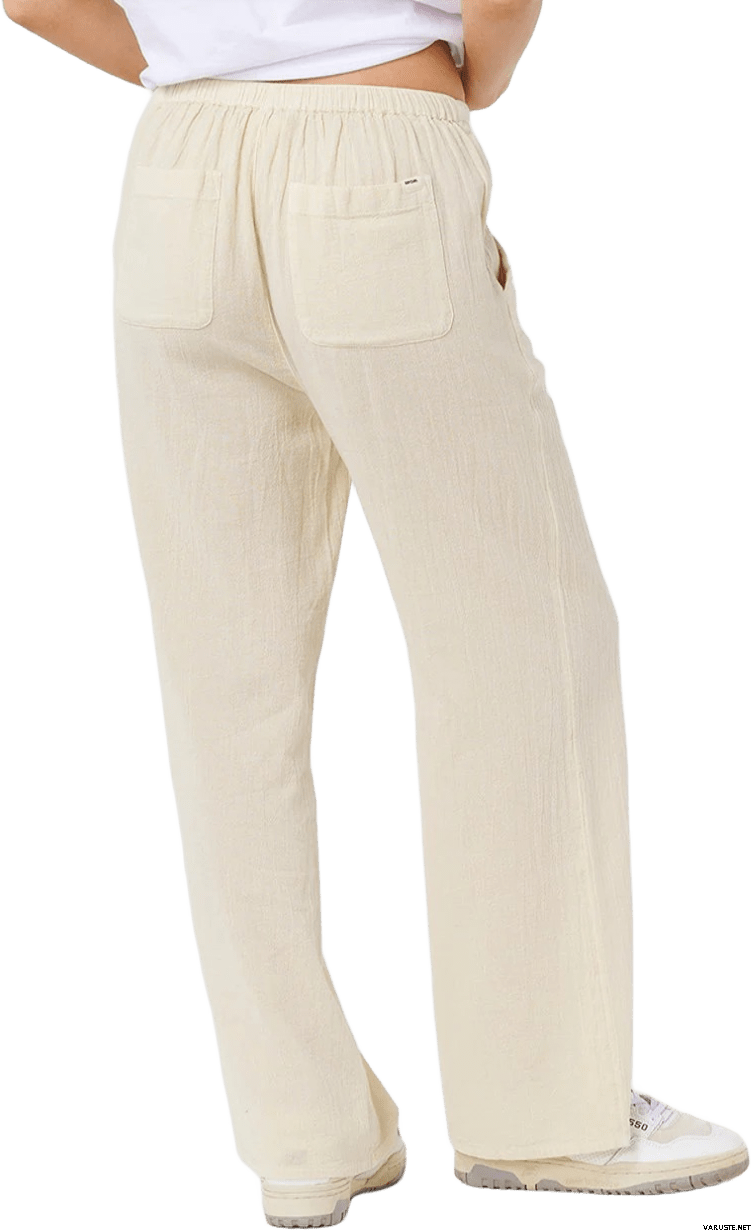 Rip Curl Classic Surf Wide Leg Pant Womens -housut tuovat rennon surffihenkisen ilmeen pigmenttivärjäyksen ja kirjailtujen yksityiskohtien kautta. Housut sopivat arkeen, rannalle ja vapaa-ajan menoihin, kun haluat helpon asun ilman turhaa säätöä. Joustovyötärö ja kiristysnyöri auttavat pitämään istuvuuden napakkana ja tekevät säätämisestä nopeaa.