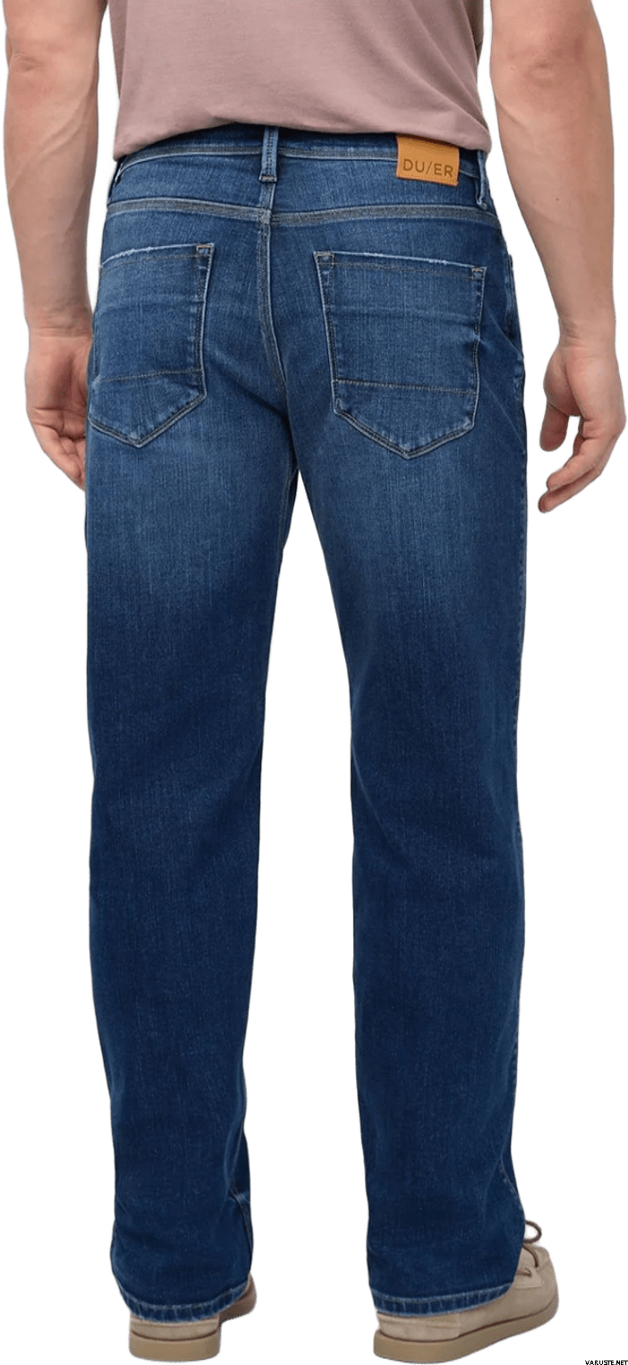 Duer Performance Denim+ Relaxed Straight Mens on ryhdikkäämpi, painavampi stretch-denim, jossa 360 asteen jousto ja haarakiila tukevat liikkumista ja tuovat perinteisemmän denimin tuntua. Miesten farkut sopivat arkeen ja matkustamiseen, kun halutaan suorat lahkeet ja kestävä rakenne. Kosteutta siirtävät ja lämpöä tasaavat kuidut tekevät käytöstä miellyttävää vaihtelevissa olosuhteissa. Hajua vähentävä käsittely auttaa pidentämään pesuvälejä.