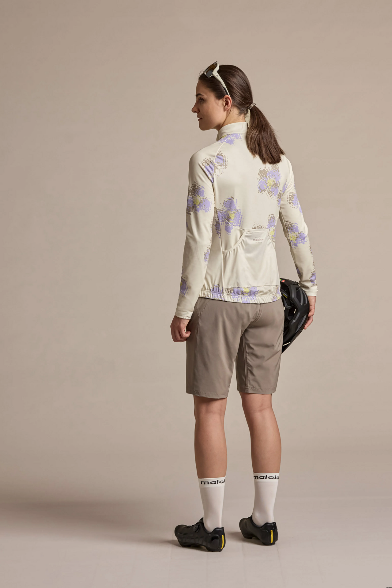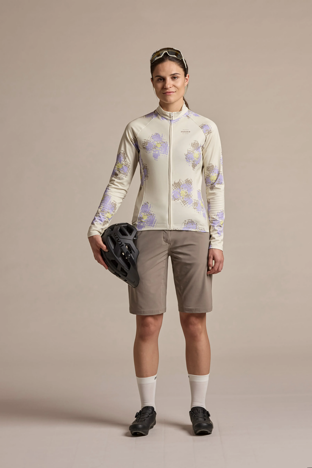 Maloja SundaM. 1/1 Cycle Jacket Womens on kevyehkösti eristävä naisten pyöräilytakki, joka on tehty kierrätetystä Thermopile-materiaalista. Erittäin joustava kangas seuraa ajoasentoa ja kuivuu nopeasti. Pystykaulus, täyspitkä vetoketju ja takana olevat taskut tekevät ajopaidan ja takin välimuodosta käytännöllisen valinnan maantie- ja gravel-ajoon.