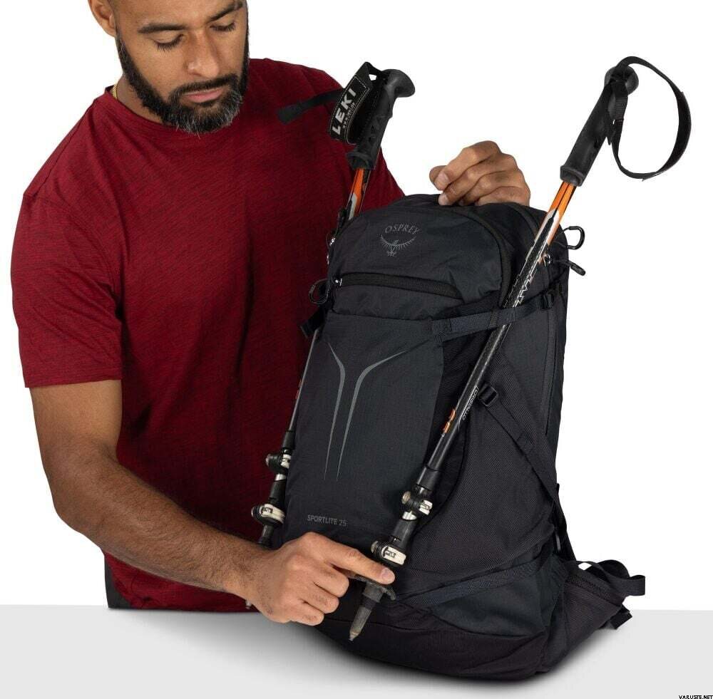 Osprey Sportlite 25 on kevyt ja virtaviivainen päiväreppu päiväretkille ja vauhdikkaisiin lenkkeihin, ja se pitää varusteet jäsenneltyinä lähellä kehoa. Paneelista aukeava rakenne nopeuttaa pakkaamista ja tavaroiden esiin ottamista polulla.