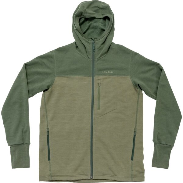 Devold Explorer Merino Hooded Jacket Mens on lämmin ja kevyeen käyttöön suunniteltu hupullinen miesten merinovillafleecetakki. Erittäin pehmeä harjattu sisäpinta sitoo ilmaa lähelle ihoa ja parantaa eristävyyttä. Ulkopinnan Expedition-villa auttaa siirtämään kosteutta pois keholta tehokkaasti vaihtelevissa olosuhteissa. Rakenne on tehty pidemmille vaelluksille, joten liikkuminen pysyy vaivattomana myös leirissä ja tunturissa.