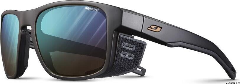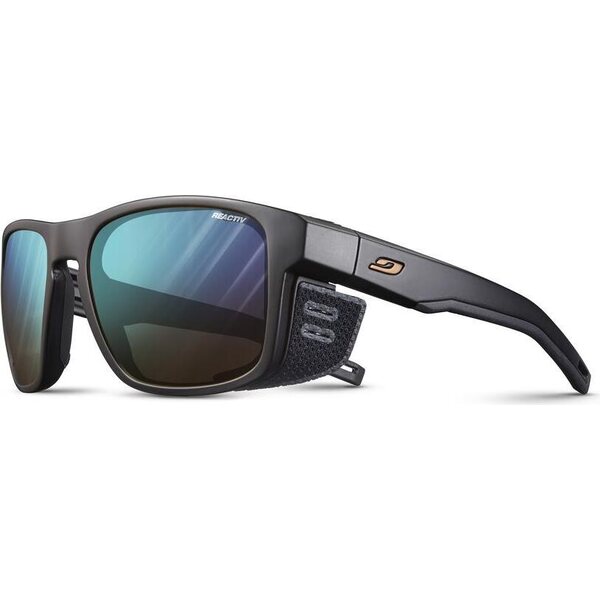 Julbo Shield M Black/Black w/ Blue Flash Reactiv 2-4 ovat suojaavat ja nopeasti reagoivat aurinkolasit, joiden fotokromaattinen linssi mukautuu valon vaihteluihin laajalla alueella. Lasit on suunniteltu erityisesti vuoristourheiluun, kun tuuli, säteily ja vaihtelevat sääolosuhteet haastavat näkyvyyttä. Irrotettavat sivusuojat lisäävät suojaa ja rungon ilmanvaihto auttaa pitämään linssin kirkkaampana kovassakin menossa. Pitävät sangat ja pehmeä nenäosa parantavat käyttömukavuutta ja varmaa istuvuutta.