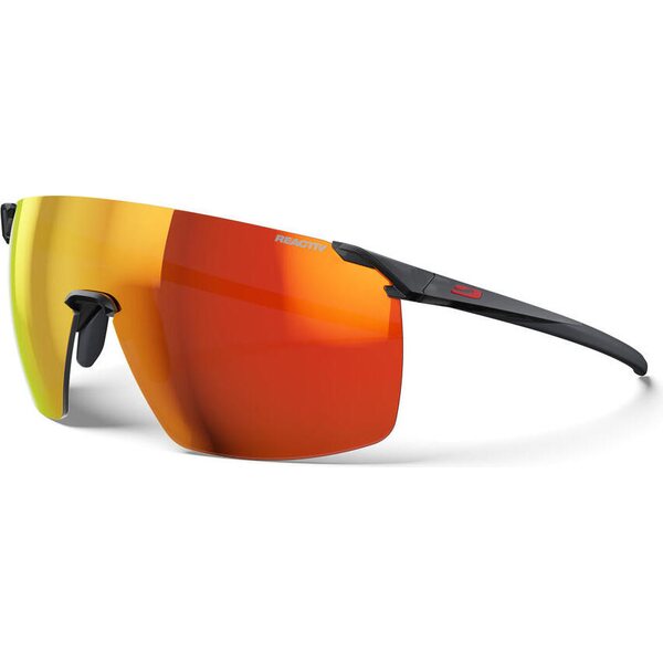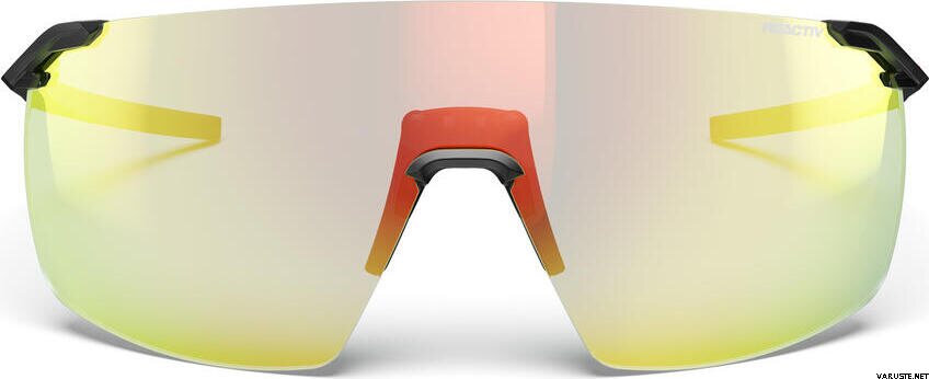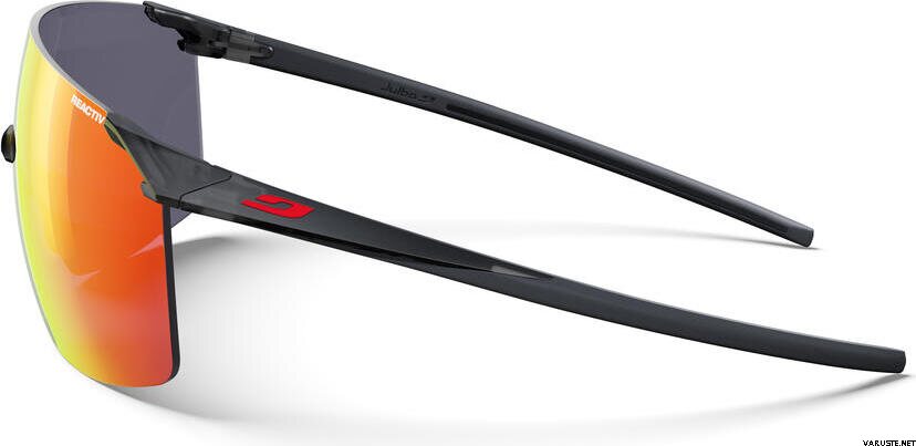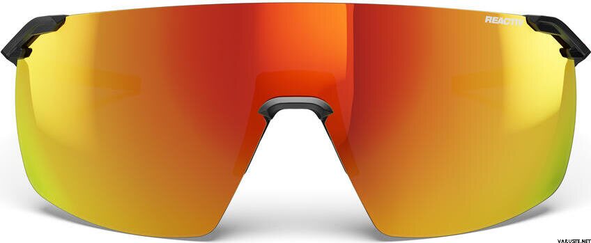 Julbo Faster L Black w/ Multilayer Red Reactiv 1-3 Light Amplifier ovat erittäin kevyet aurinkolasit, joissa fotokromaattinen Reactiv 1-3 -linssi reagoi nopeasti vaihtuviin valo-olosuhteisiin. Aerodynaaminen, kasvoja myötäilevä muoto ja suuri yksiosainen linssi tuovat laajan näkökentän polkujuoksuun ja pyöräilyyn. Minimalistinen, kehyksetön rakenne ja kolmen pisteen kiinnitys pitävät näkymän avoimena ja tuntuman huomaamattomana. Säädettävä nenätuki ja pitävä sankarakennne auttavat laseja pysymään paikallaan myös vauhdissa.