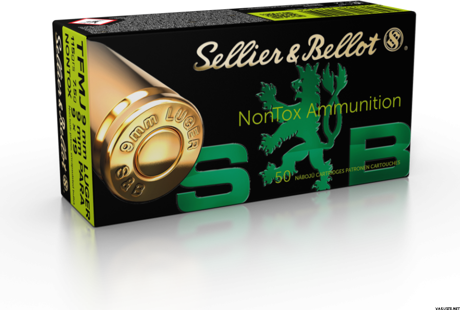 Sellier & Bellot 9mm pistoolin non tox patruuna. 8g TFMJ luodilla.