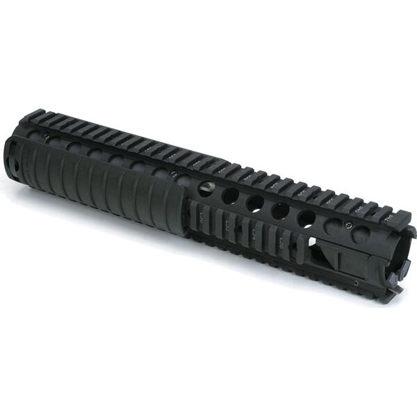 The KAC M5 RAS (Rail Adapter System) was developed for use on the US military?s M16A4, and with hundreds of thousands of rails issued to date, it is one of the most battle proven designs available for the AR-15 platform. This non-free float handguard is a simple-to-install, drop-in upgrade that features genuine Mil-Spec M1913 Picatinny Rails along its entire length. What sets the M5 RAS apart from other 2-piece quad rails on the market is that it securely locks to the rifle?s barrel nut via a clamp and screw arrangement, making it a very solid foundation upon which to mount tactical accessories. Includes three KAC 11 Rib Rail Panels.