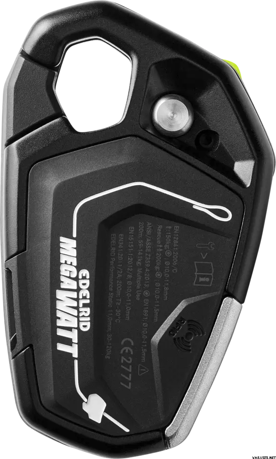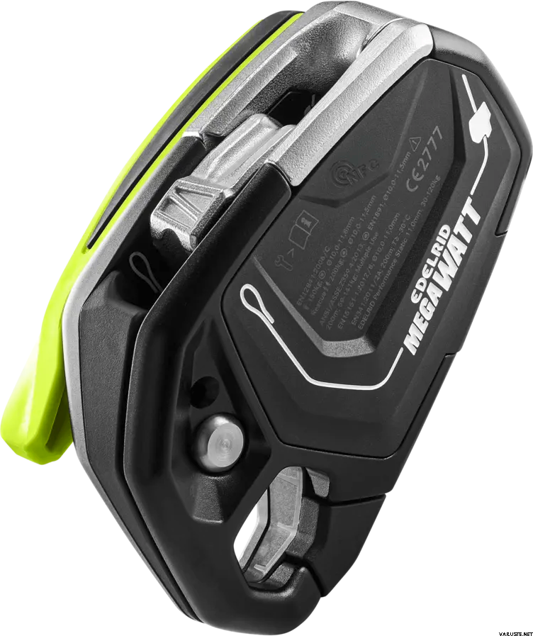 Edelrid Megawatt on erittäin kompakti ja kevyt laskeutumis- ja varmistuslaite vaativaan työ- ja pelastuskäyttöön. Automaattisesti lukittuva rakenne auttaa hallitsemaan laskeutumista tarkasti myös raskailla kuormilla. Laite mahdollistaa sujuvan laskeutumisen sekä sen jälkeen varman työasemoitumisen haluttuun kohtaan köyttä. Oikea- ja vasenkätinen käyttö on huomioitu ergonomisella kahvalla ja selkeällä toiminnalla.