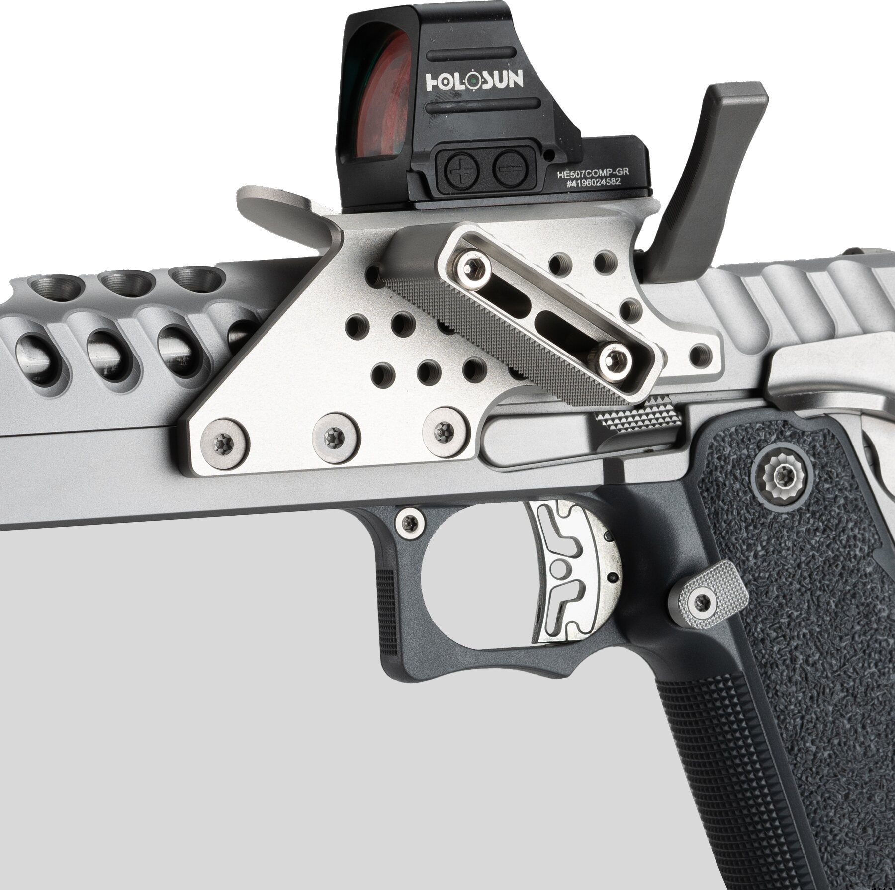 Yhteensopivuus: 1911 Double Stack -pistoolit C-more-runkokiinnityskuviolla (3 reikää ja 5 reikää)