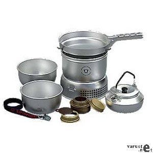 Mukana kaksi 1,0 litran kattilaa, 0.6 litran kavipannu ja paistinpannu (halkaisija 18 cm), jota käytetään myös kattilan kantena. Tällöin ruoan valmistus nopeutuu ja polttoainetta kuluu vähemmän.