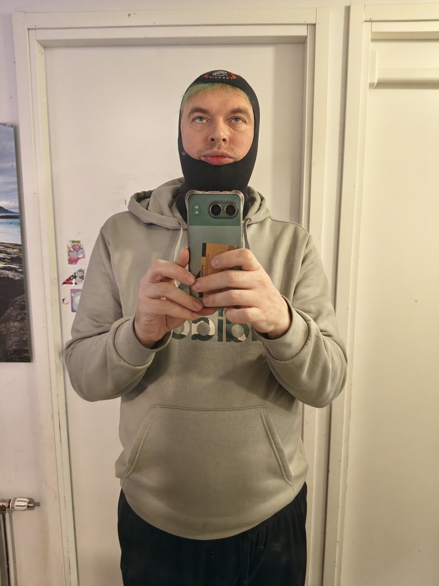 Uintikäytössä mukava, kasvoauķko on hyvän kokoinen. Kaulus voisi olla pidempi, nyt hupun ja märkäpuvun väliin jää paljasta ihoa
