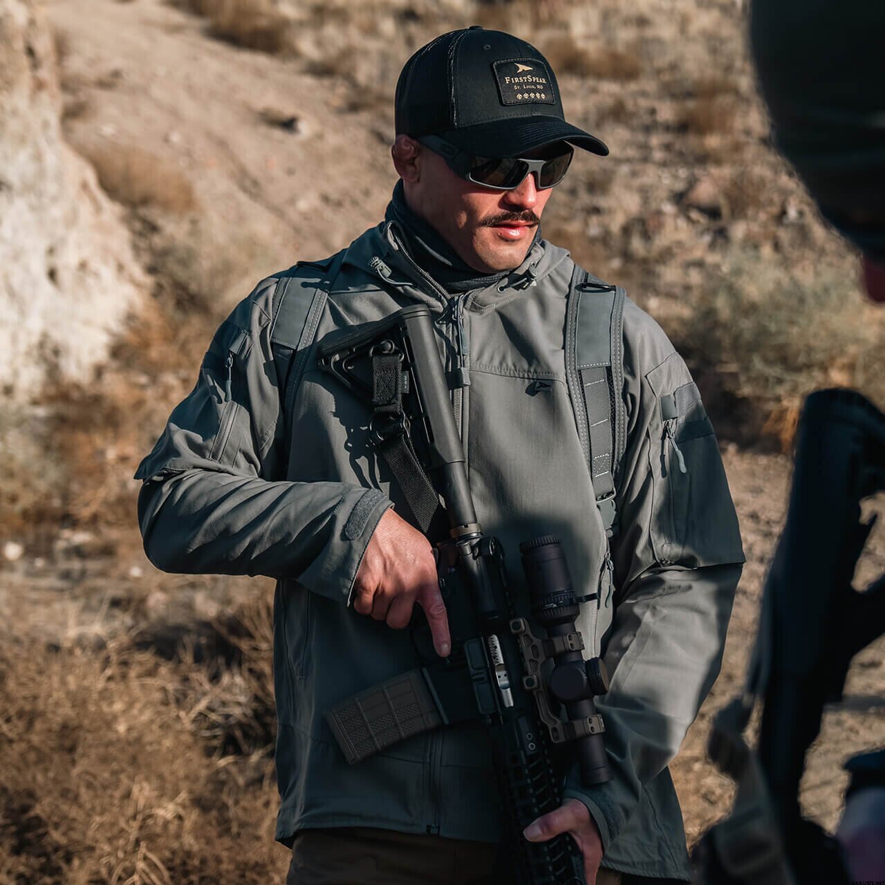 First Spear The Wind Cheater on erittäin kevyt ja hyvin hengittävä kuoritakki, joka blokkaa tuulta tehokkaasti ja hylkii vettä DWR-käsittelynsä ansiosta. Takki toimii etenkin vauhdikkaassa liikkeessä ja vaihtelevissa olosuhteissa, kun tarvitaan joustavaa ja hiljaista pintakerrosta. Erittäin suuri huppu mahtuu myös kypärän päälle ja väljä leikkaus ei estä liikkuvuutta. Kainaloiden vetoketjut ja nopeasti kuivuva rakenne auttavat pitämään olon tasaisena myös kuormituksessa.