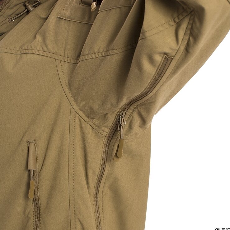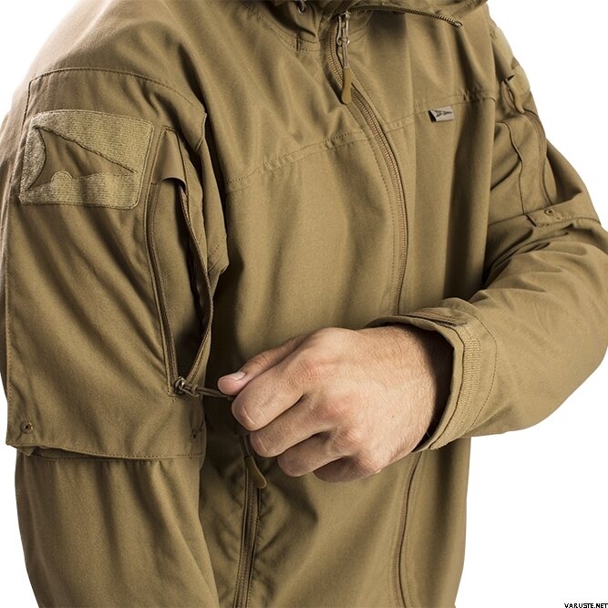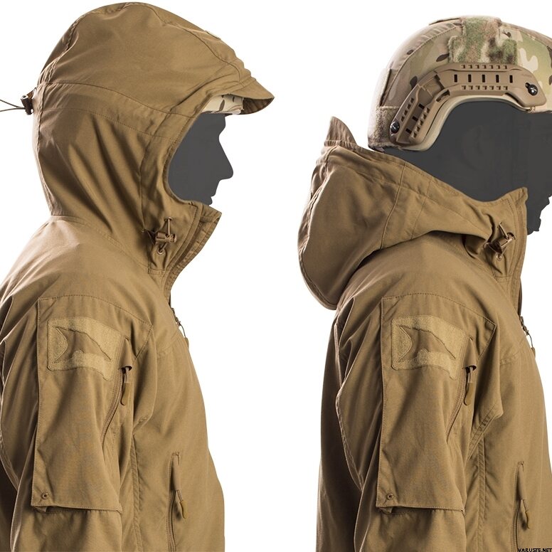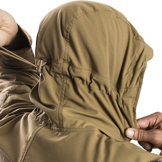- Erittäin suuri huppu, joka on mitoitettu sopimaan kypärän päälle