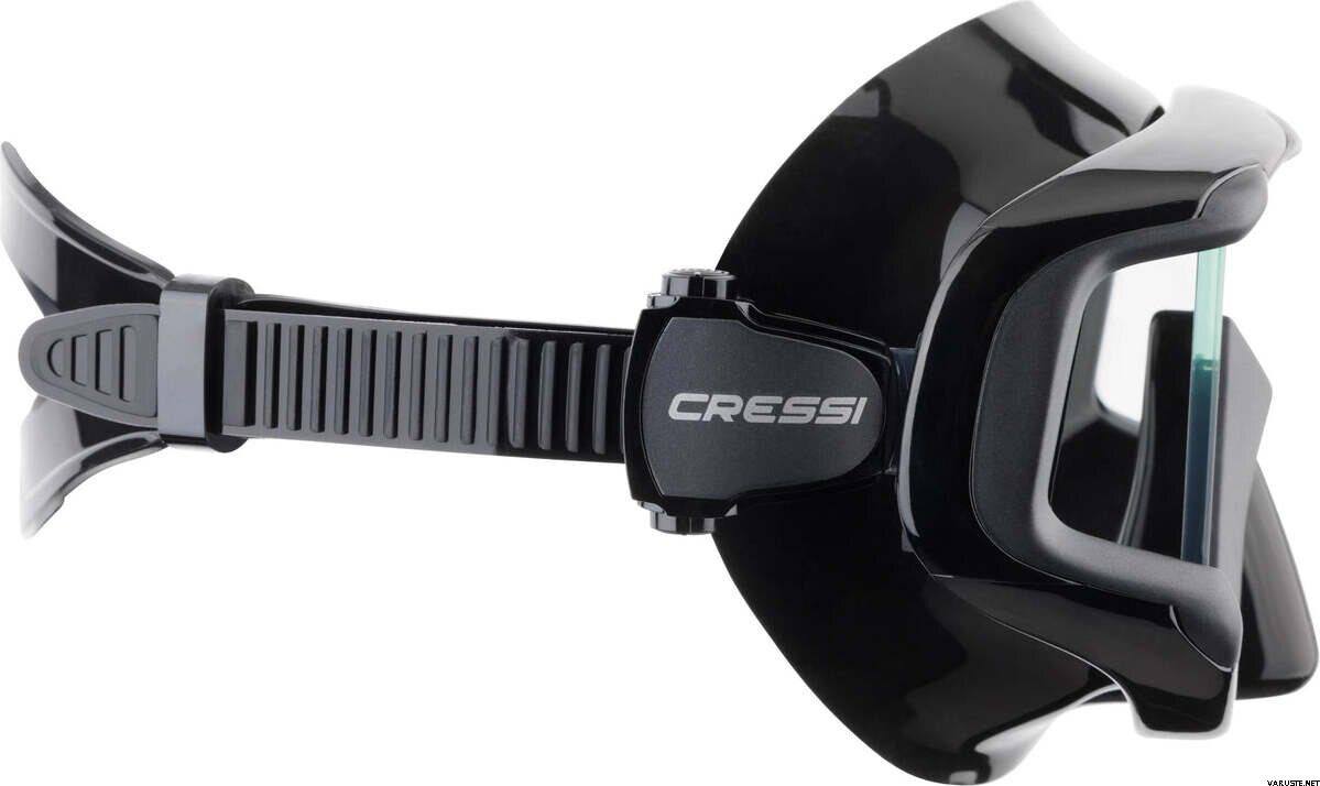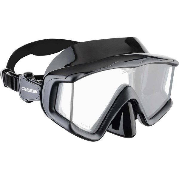 Cressi Liberty Triside posiada szerokie, monochromatyczne soczewki przednie z dwustronnymi soczewkami, które zapewniają panoramiczny widok bez żadnych zakłóceń. W rezultacie powstała maska, która przepuszcza maksymalną ilość światła i jest tak otwarta jak sam ocean. Wszystkie soczewki wykonane są ze szkła hartowanego, co zapewnia najlepszą przejrzystość. Osłona wykonana jest z hipoalergicznego silikonu, co zapewnia komfort i idealne dopasowanie. Długość paska można łatwo regulować za pomocą dwóch guzików na klamrze, co umożliwia również noszenie go w rękawiczkach. Oprawka jest barwiona z efektem farby, co sprawia, że maska jest elegancka i atrakcyjna wizualnie, a do tego można ją dopasować do swojego sprzętu.