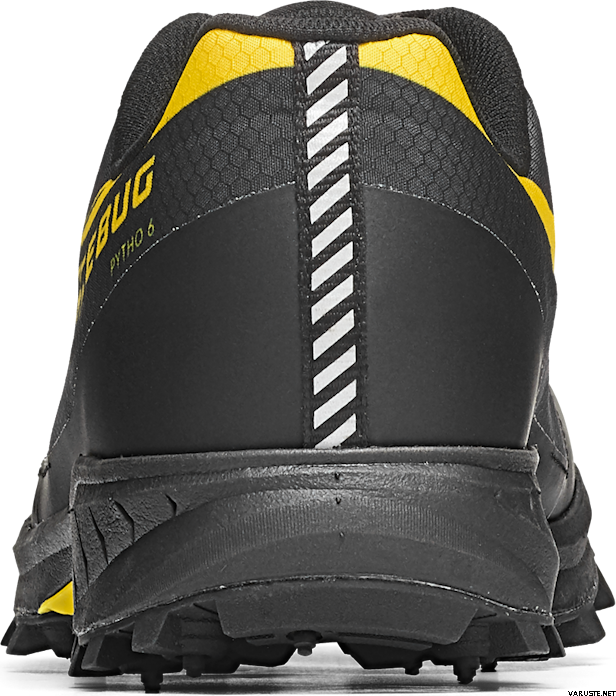 Pytho BUGrip istnieje od wielu lat i łączy w sobie cechy, które docenia wielu zimowych biegaczy; średni spadek, sztywność skrętna i pojemny czubek ochronny. Lekka, ale wytrzymała cholewka, która może wytrzymać uderzenia. Cholewka wchłania minimalną ilość wody i ma świetną hydrofobowość. Najwyższej klasy możliwości biegowe z doskonałą kontrolą podłoża i kopytem przeznaczonym do treningu na długich dystansach. Dynamiczne stalowe kołki BUGrip zapewniają przyczepność na różnych nawierzchniach, od oblodzonych dróg po mokre korzenie.