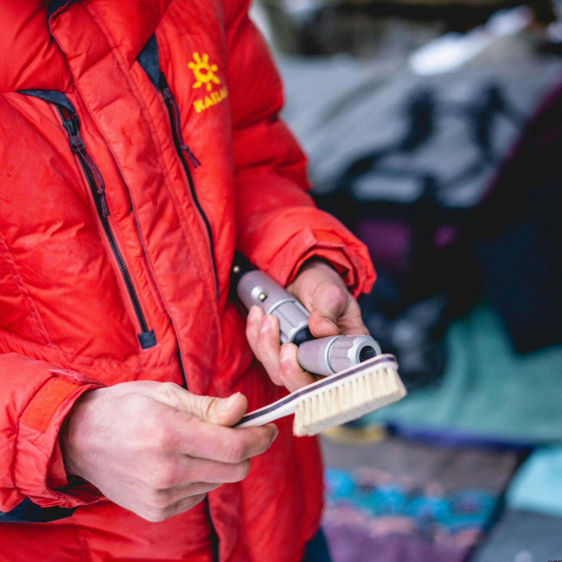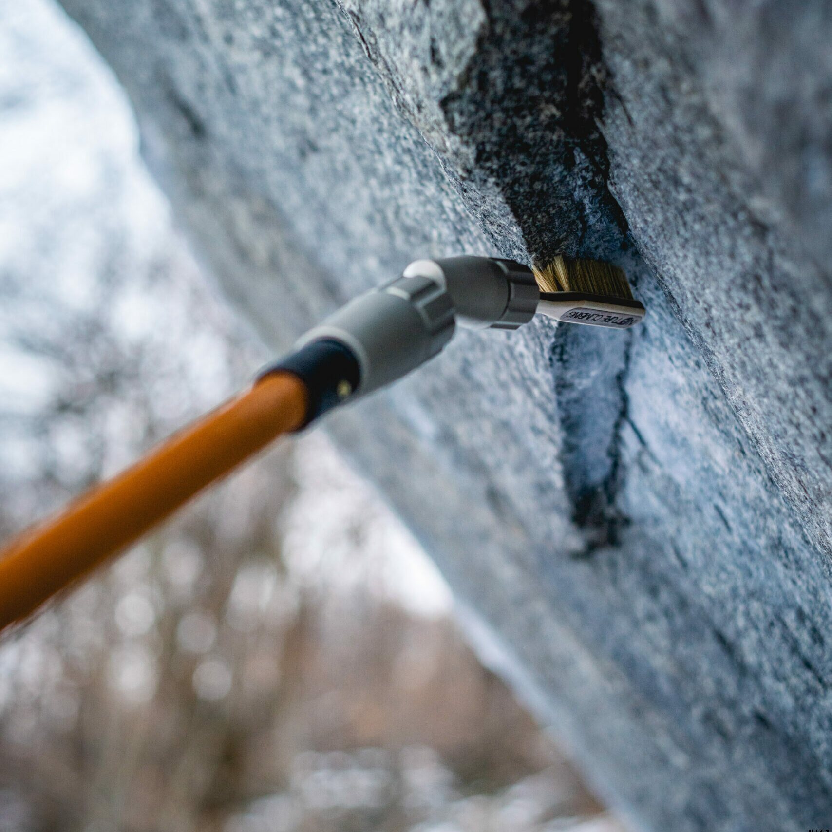 - Aluminiowa głowica szczotki może służyć również jako chłodziarka do rąk podczas wspinaczki na świeżym powietrzu