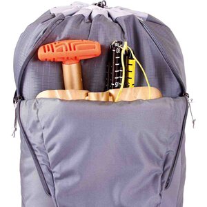 Dual technical ice tools can be attached securely, and classic piolets can be carried internally, or in a quick deploy position. The carry system is low profile, provides great stability and features hip pockets and gear loops on the belt and lanyard clip points on the shoulder straps.