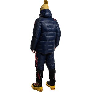 The La Sportiva Olympus Tech Down Parka Mens is the ultimate choice for high-altitude mountaineering and Himalayan expeditions, offering exceptional insulation and lightweight performance. Designed with meticulous attention to detail, this parka minimizes cold spots to ensure the best weight-to-warmth ratio available. The innovative 3D Aero® chambers construction allows the 1000 CU.IN. white down to fully expand, while the single panel structure on the back and sides reduces seams and overall weight, making it an essential piece for extreme conditions.