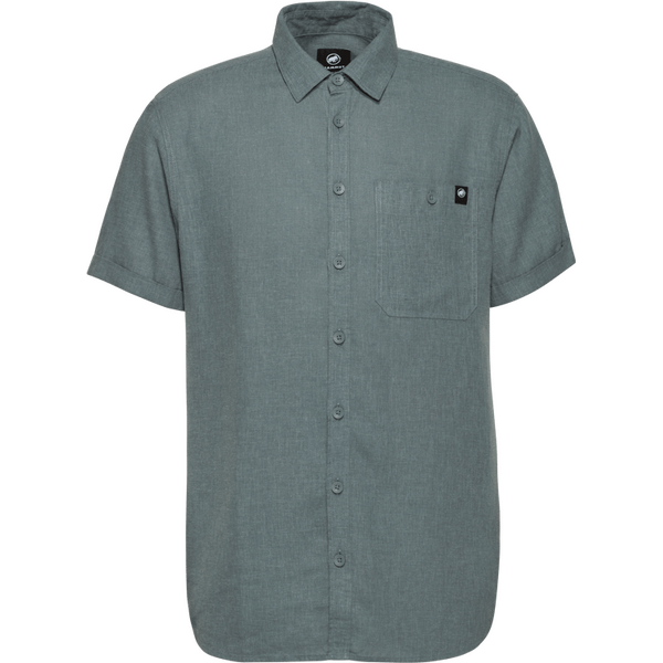 The Mammut Alvra Summer Shirt Mens is a versatile men's short sleeve collared shirt designed for warm-weather adventures. Crafted from a soft blend of hemp and Lyocell, this shirt ensures excellent breathability and temperature control, making it perfect for outdoor activities. Its natural fibers efficiently wick moisture away, keeping you comfortable as temperatures rise. The shirt's short sleeves and rolled-up hems further enhance airflow, making it an ideal choice for relaxed days in nature.