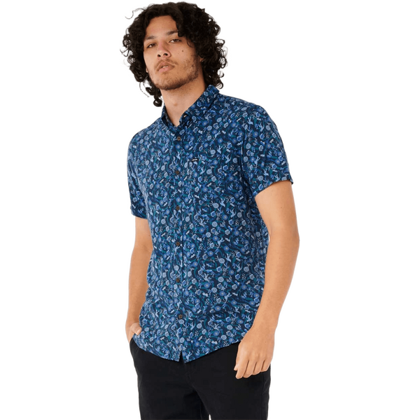 The Rip Curl Fun Times Short Sleeve Shirt Mens is a vibrant addition to any wardrobe, designed to uplift your mood with its lively print. This short sleeve shirt effortlessly enhances your style, whether paired with jeans or chinos, making it perfect for a variety of occasions from beach outings to casual errands. Its relaxed and adaptable design ensures it becomes a staple piece you'll reach for repeatedly.