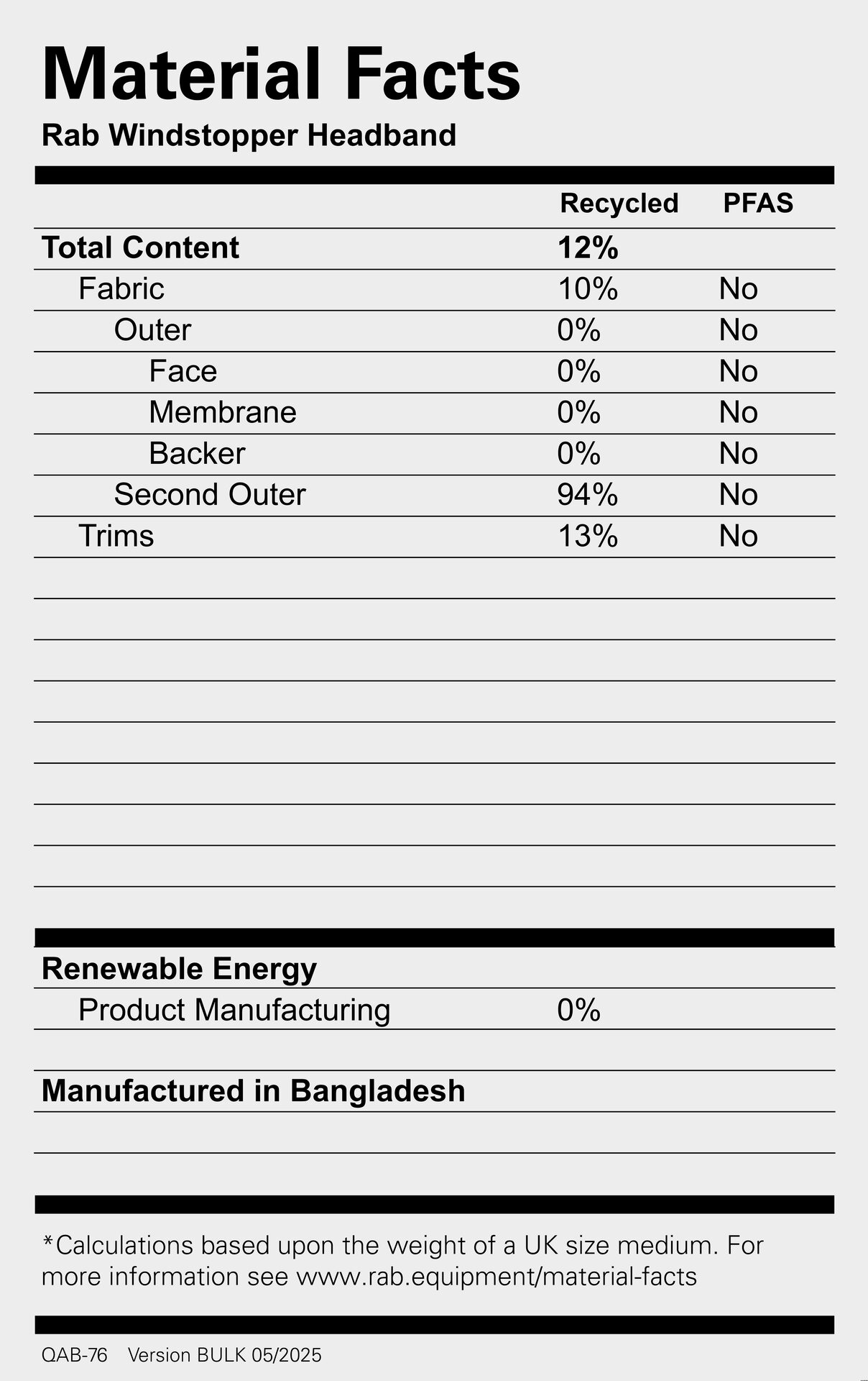 Główny materiał: produkty Windstopper firmy Gore-Tex Labs z powłoką DWR bez fluorowęglowodorów (250 g/m2)
