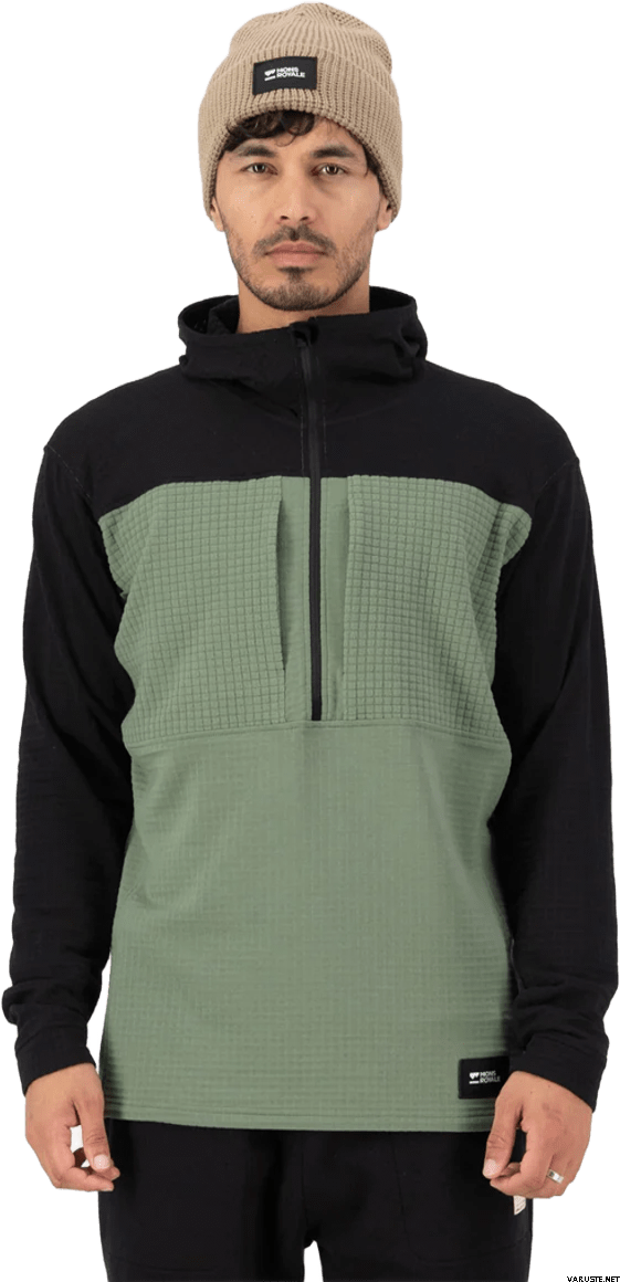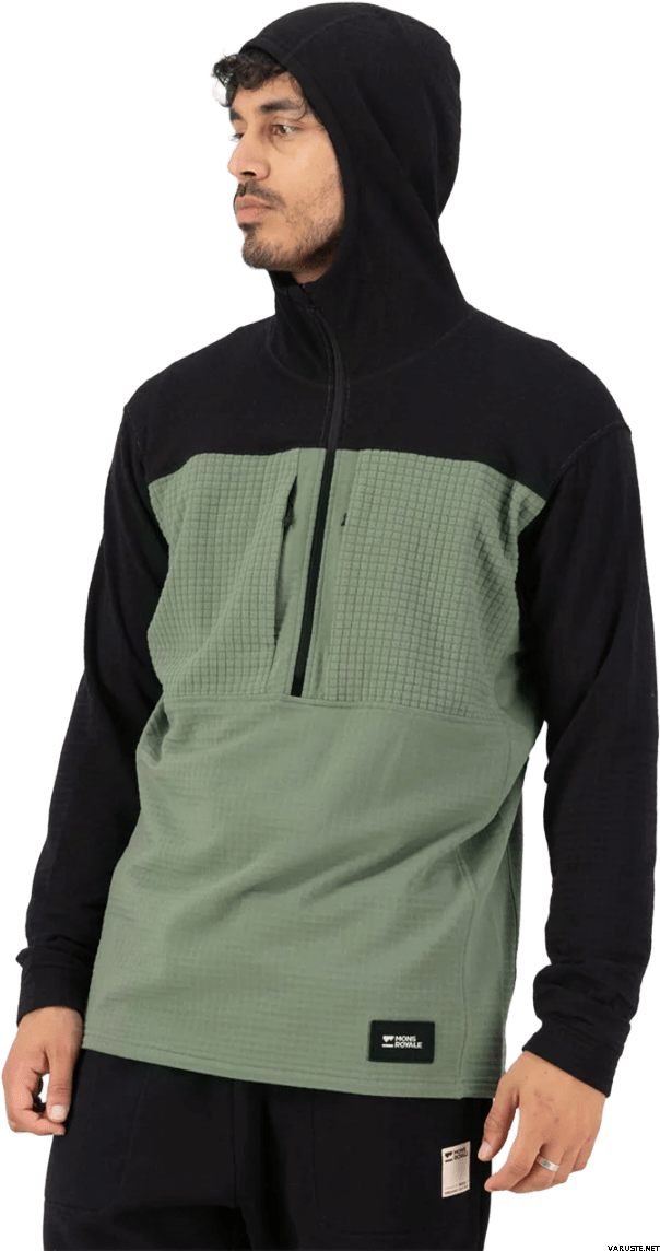 Bluza polarowa Offgrid Merino Fleece z długim rękawem i zamkiem błyskawicznym 1/2 to warstwa środkowa zaprojektowana dla osób poszukujących ciepła bez zbędnego ciężaru. Wykonana z unikalnego polaru Merino Grid Fleece firmy Mons, oferuje wyjątkową równowagę izolacji, oddychalności i lekkości oraz komfortu. Ta warstwa środkowa idealnie nadaje się do aktywnego wypoczynku, zapewniając lepszą wentylację i wydajność. Duży kaptur z polaru Grid zapewnia dodatkowe ciepło, a klin pod pachami gwarantuje swobodę ruchów. Zamek błyskawiczny do połowy szyi umożliwia regulację wentylacji, a przednie kieszenie na piersi zapinane na zamek umożliwiają wygodne przechowywanie niezbędnych drobiazgów.