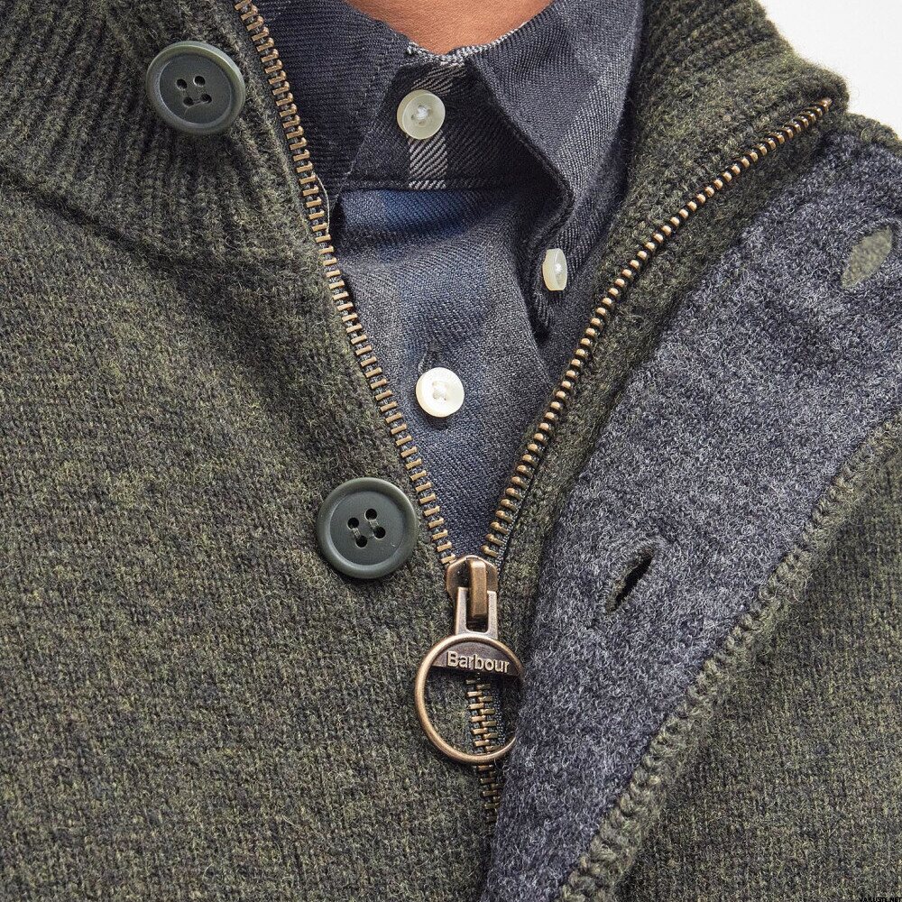 Sweter Essential Patch Zip Through Knitted Sweter jest wykonany z czystej wełny jagnięcej, zapewniając przytulność i ciepło. Posiada łaty z alcantary na łokciach i charakterystyczny haft na piersi, dodający mu szyku. Klasyczny krój sprawia, że idealnie nadaje się do noszenia na koszulkach i T-shirtach, zapewniając wygodę i wszechstronność na różne okazje.