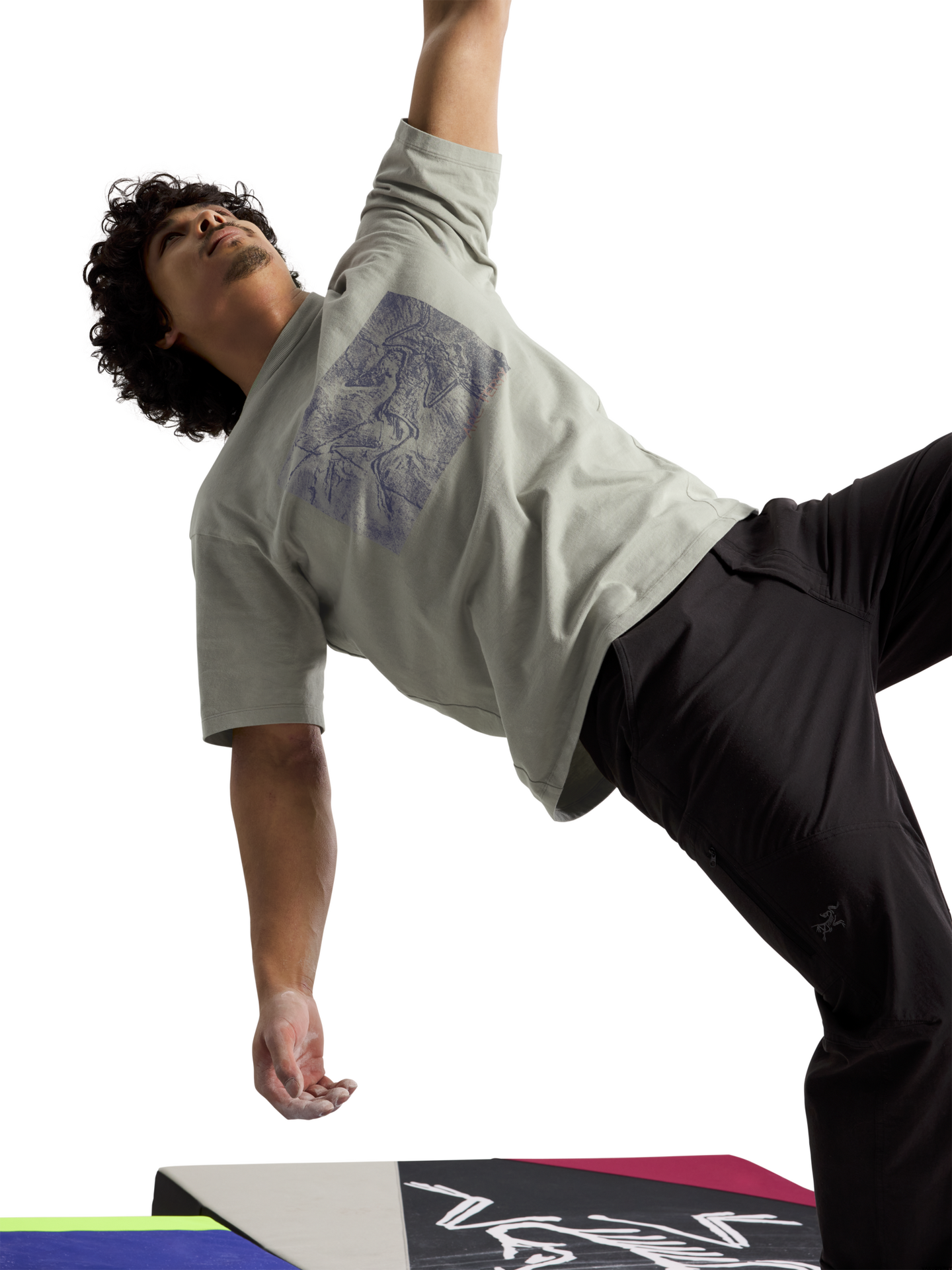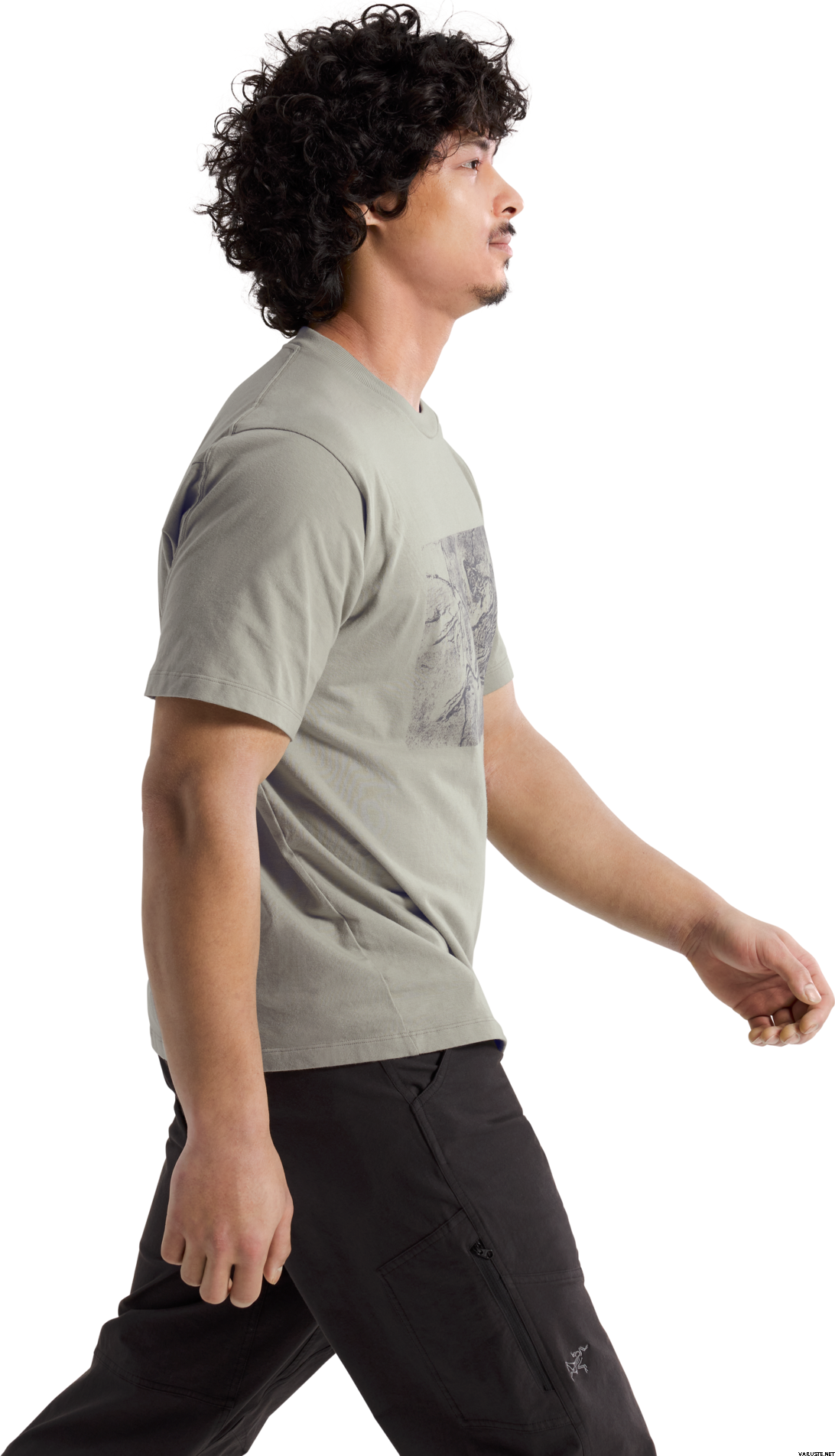 Arc'teryx Kragg Cotton Lithographica Short Sleeve Mens to solidna męska koszulka z krótkim rękawem wykonana z grubej, czesanej bawełny o gramaturze 240 g/m². Koszulka ozdobiona jest unikalną grafiką przedstawiającą skamieniałego ptaka, łączącą naturalny komfort z wytrzymałością, dzięki czemu nadaje się zarówno do boulderingu, jak i do noszenia na co dzień. Luźny krój i kliny pod pachami zapewniają swobodę ruchów i wygodę przez cały dzień.