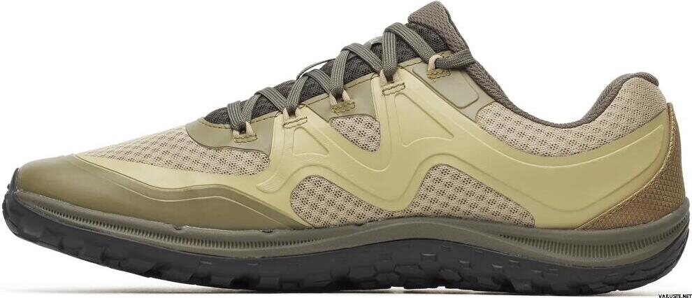 Rękawiczki Merrell Trail Glove 8 Mens zapewniają wygodę i naturalny chód podczas biegów i wędrówek w terenie, łącząc platformę z zerowym dropem z pewną przyczepnością. Te minimalistyczne buty do biegania w terenie wykorzystują lekką amortyzację, która redukuje drgania, jednocześnie pozwalając stopom swobodnie poruszać się po terenie. Bezpieczne trzymanie pięty i owinięty język zapewniają stabilność na nierównym terenie. Przyczepna przyczepność wspomaga ruchy zarówno na mokrej, jak i suchej nawierzchni.
