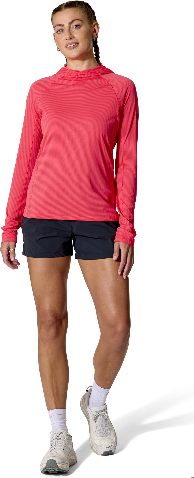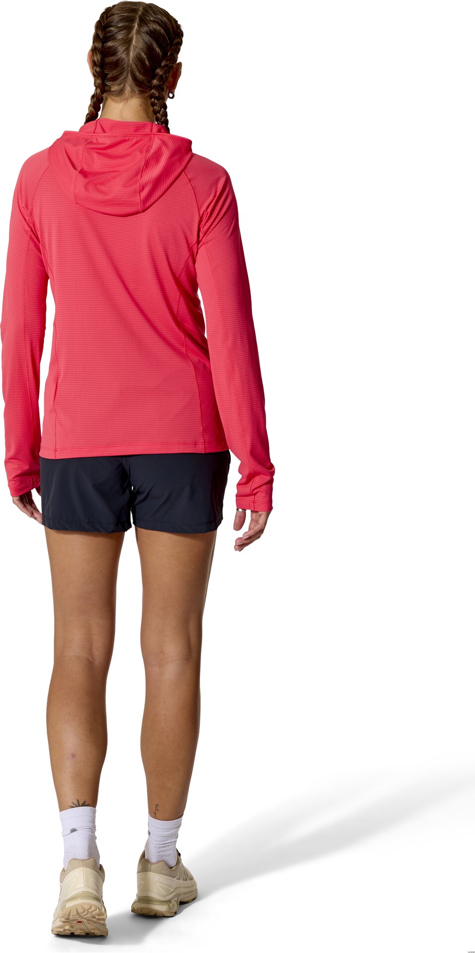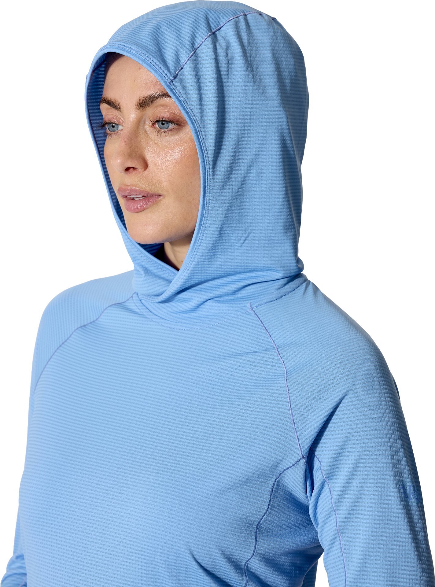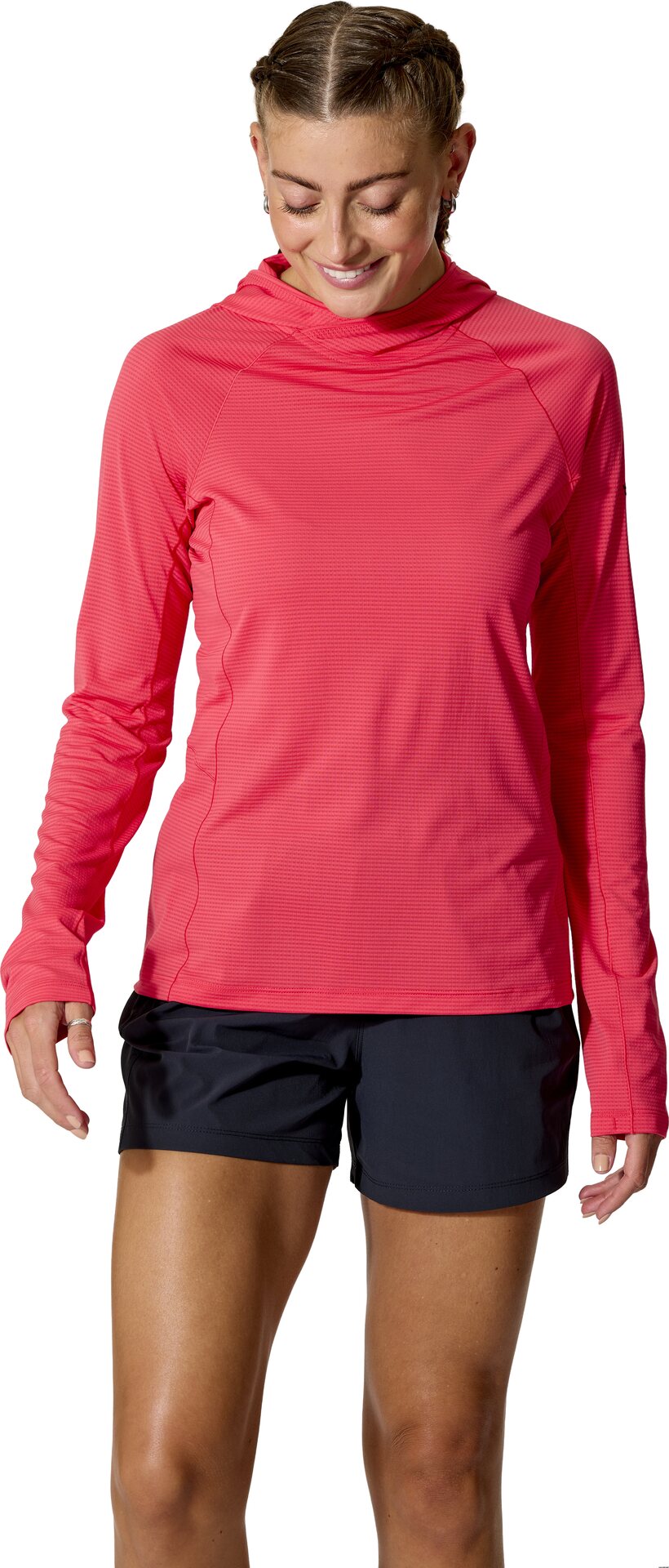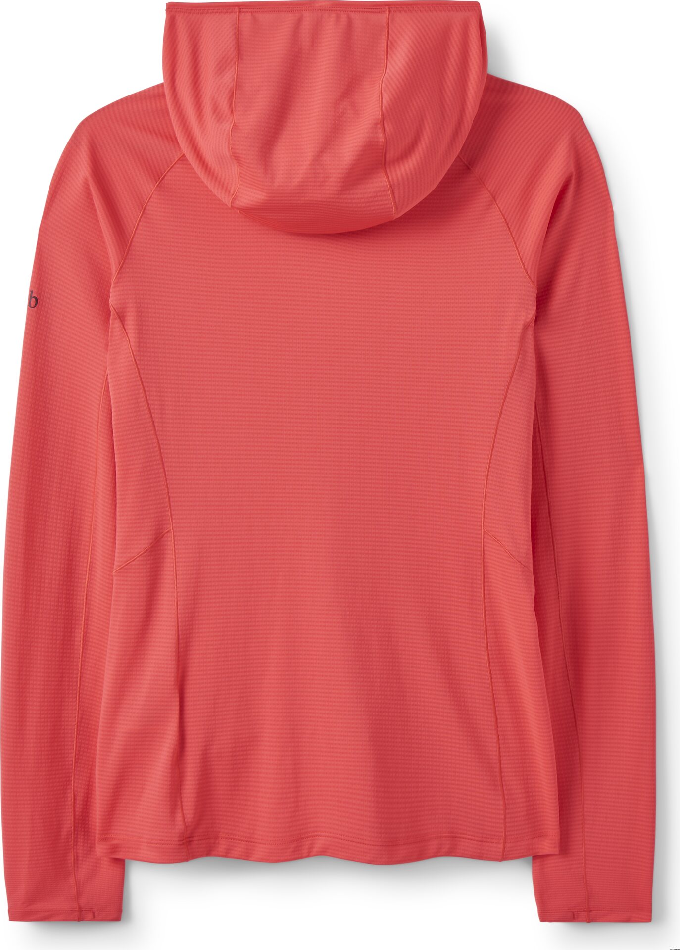 Bluza z kapturem Rab Sonic Hoody damska to lekka, techniczna warstwa bazowa zaprojektowana na chłodniejsze poranki, gdy zwykły T-shirt to za mało. Wyposażona w dopasowany, otulający kaptur i doskonale dopasowaną konstrukcję, bluza idealnie sprawdzi się podczas różnych aktywności, w których potrzebujesz dodatkowej ochrony bez konieczności noszenia grubej warstwy środkowej. Oddychający materiał Dryflo Air skutecznie odprowadza wilgoć, zapewniając komfort podczas szybkich wędrówek, biegów górskich i wymagających podejść.