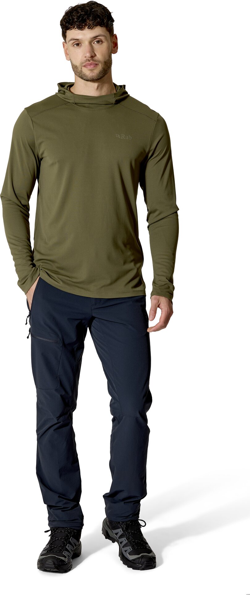 Męska bluza z kapturem Rab Force Hoody to niezwykle elastyczna, przeciwsłoneczna bluza z kapturem, zaprojektowana tak, aby idealnie sprawdzała się zarówno w chłodne wiosenne poranki, jak i w letnie upały. Wykonana z oddychającego materiału Dryflo Solar, oferuje doskonałą ochronę przed promieniowaniem UV, dzięki czemu idealnie nadaje się na wyprawy na świeżym powietrzu. Materiał odprowadza wilgoć i zapewnia komfort, a jego regularny krój pozwala na założenie jej na koszulkę w chłodniejsze dni. Dodatkowo, bluza posiada powłokę antyzapachową, która zapewnia świeżość przez wiele dni, co czyni ją idealną na długie wędrówki i wypady z noclegiem.