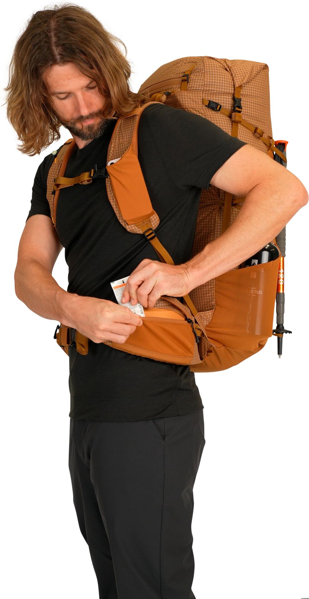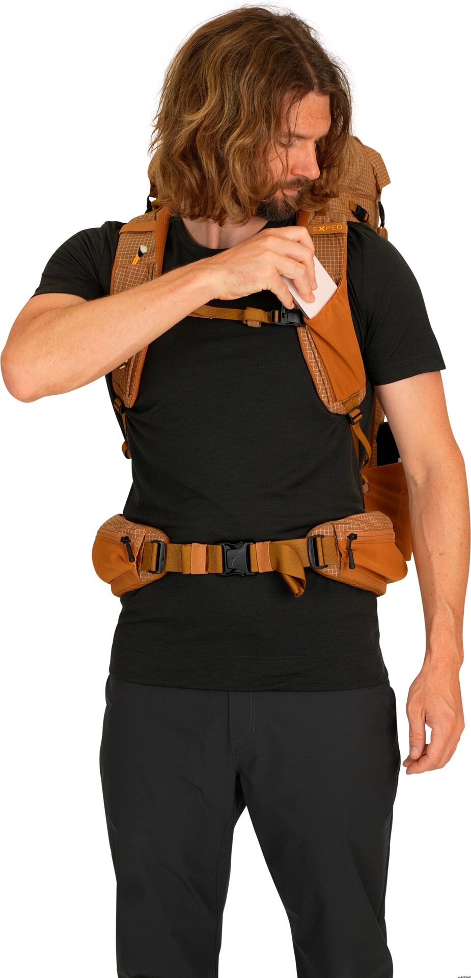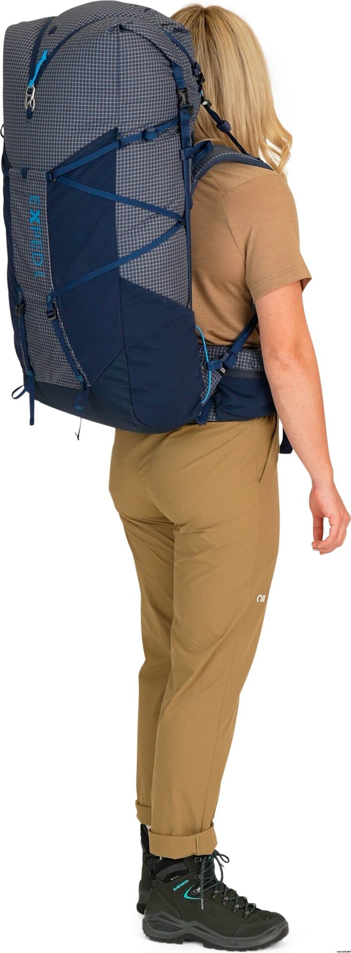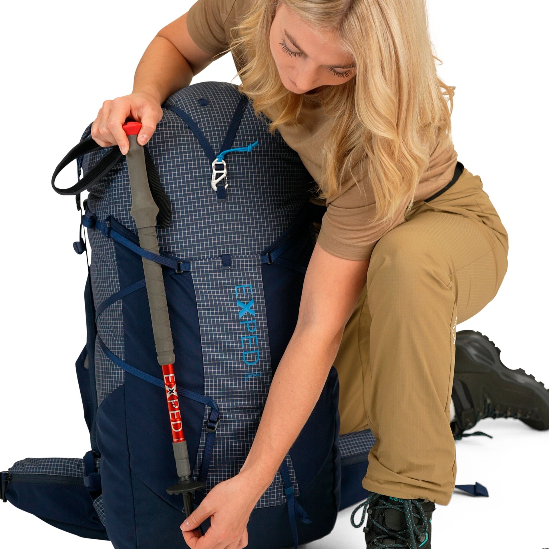 Exped Lightning 60 to ultralekki, anatomiczny plecak unisex, stworzony z myślą o wysokim komforcie noszenia na długich trasach trekkingowych dzięki regulowanemu zawieszeniu T-Rex i rolowanemu zamknięciu. Plecak zapewnia naturalną swobodę ruchów dzięki zredukowanym punktom styku, które wspomagają przepływ powietrza wzdłuż pleców, a jednocześnie efektywnie przenoszą ciężar na pas biodrowy. Inteligentna regulacja objętości za pomocą pasów kompresyjnych zygzakowatych ułatwia zmniejszenie ładunku lub przymocowanie nieporęcznych przedmiotów, takich jak karimata. Liczne kieszenie zewnętrzne i na pasie biodrowym oraz modułowe punkty mocowania pomagają utrzymać porządek w plecaku podczas wielodniowych wypraw.