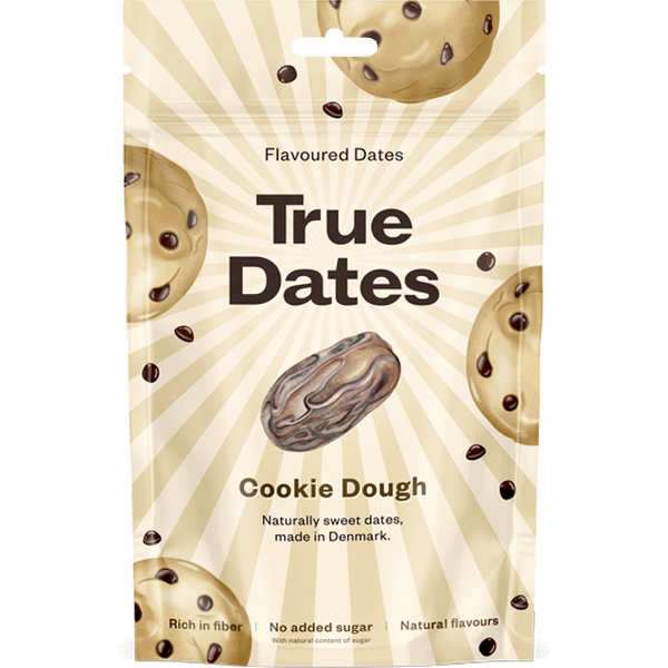 True Co. Ciasto daktylowe True Dates Cookie Dough 100 g wyróżnia się bogatym smakiem ciasta ciasteczkowego w połączeniu z naturalnie słodkimi daktylami, tworząc deserową przekąskę. Te przekąski to daktyle, stworzone do delektowania się nimi prosto z opakowania, gdy tylko najdzie nas ochota na coś słodkiego. To połączenie smaków zapewnia sycącą ucztę o gładkiej, rozpływającej się w ustach konsystencji w każdym kęsie.