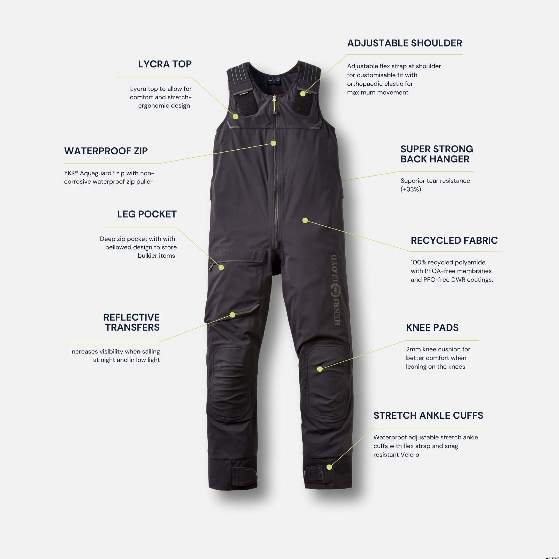 Męskie spodnie Henri Lloyd Dynamic Salopette wyróżniają się lekką, 3-warstwową, wodoodporną konstrukcją z recyklingu oraz szerokimi szelkami, zaprojektowanymi z myślą o długich dniach na pokładzie. Te męskie spodnie typu shell łączą ochronę przed niekorzystnymi warunkami pogodowymi z elastycznością, zapewniającą swobodę ruchów na pokładzie. Wzmocnienia i amortyzacja kolan zapewniają trwałość i wygodę podczas pracy na nierównych nawierzchniach. Praktyczne, wodoodporne zamki i głęboka kieszeń ułatwiają przechowywanie niezbędnych drobiazgów w mokrych warunkach.